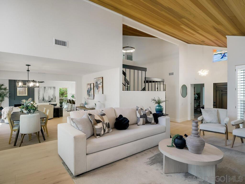 Come see this stunning, fully remodeled 4-bedroom, 3-bath home on a quiet street just minutes from shopping, dining, grocery stores, and everyday conveniences. Located in the Poway Unified School District, this exceptional home features a private backyard perfect for relaxing or entertaining, access to hiking trails and a spacious 2-car garage. Inside, you’ll be greeted by soaring vaulted ceilings, two elegant fireplaces, and an abundance of natural light enhanced by double-pane glass windows adorned with custom wood shutters. The home has been thoughtfully upgraded throughout, boasting a new kitchen, beautifully updated bathrooms, new flooring, hanging lighting fixtures, a new electrical panel, and paid solar for energy efficiency and long-term savings. Every detail has been carefully curated to offer comfort, style, and modern luxury—this is a home you truly won’t want to miss.