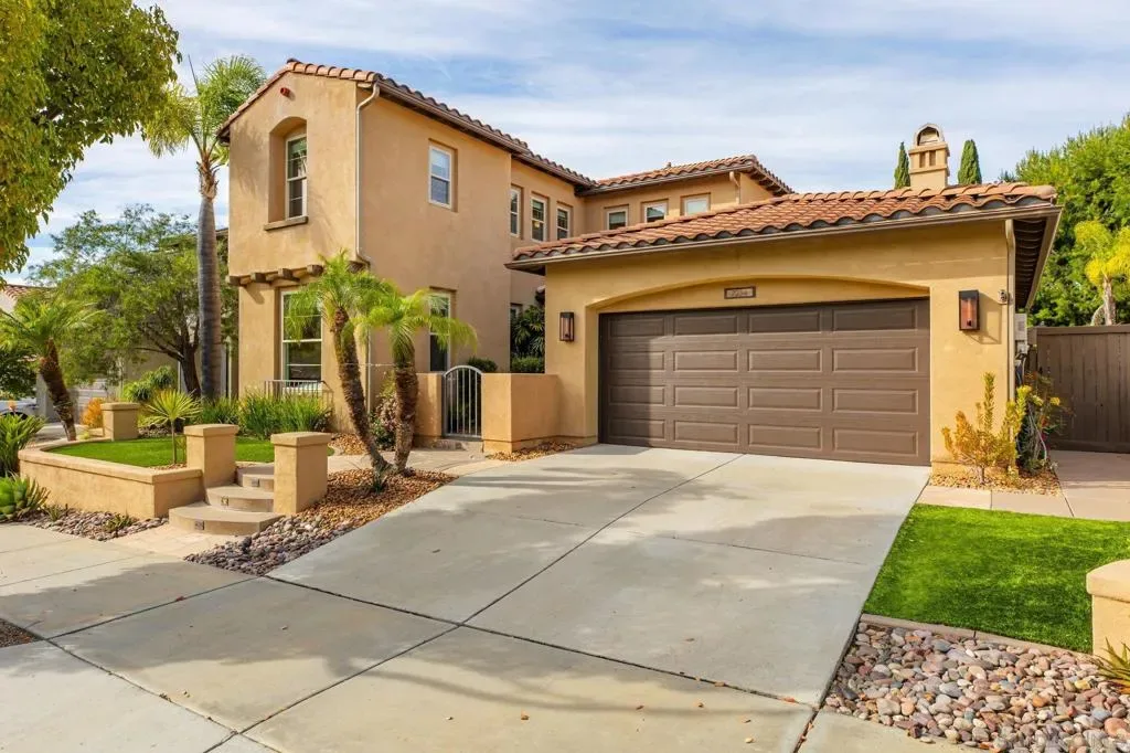 Homes with this level of flexibility and finish rarely come available in Avalon Point, one of Rancho Peñasquitos’ most desirable neighborhoods. Ideally situated on a quiet cul-de-sac street, this thoughtfully designed residence offers both privacy and convenience, with easy freeway access and a central location equidistant to major employment hubs in Sorrento Valley and Rancho Bernardo. Designed for both everyday living and effortless entertaining, the home features a private junior suite on the main level, three additional bedrooms upstairs, and a versatile loft with an updated tech center and dual built-in workstations—ideal for today’s remote or hybrid lifestyle. From the moment you enter through the custom front door, the home impresses with its modern aesthetic—soft neutral paint, crisp white trim, dramatic living room beams, rich wood flooring, new blinds throughout, dual-pane windows, and smart-home enhancements. The updated kitchen shines with a full designer backsplash and stainless steel appliances, while owned solar enhances efficiency. Outdoor living is elevated with a resort-style backyard featuring a fire pit, low-maintenance turf, and space designed for both relaxation and gathering. Upstairs, the primary retreat offers serene views, dual walk-in closets, and a spa-like ensuite bath finished in custom tile. A three-car tandem garage provides exceptional storage with built-in cabinetry and epoxy-coated floors. With a prime location near schools, parks, trails, dining, and shopping, this home offers a unique blend of luxury, functionality, and convenience. VA assumable loan.