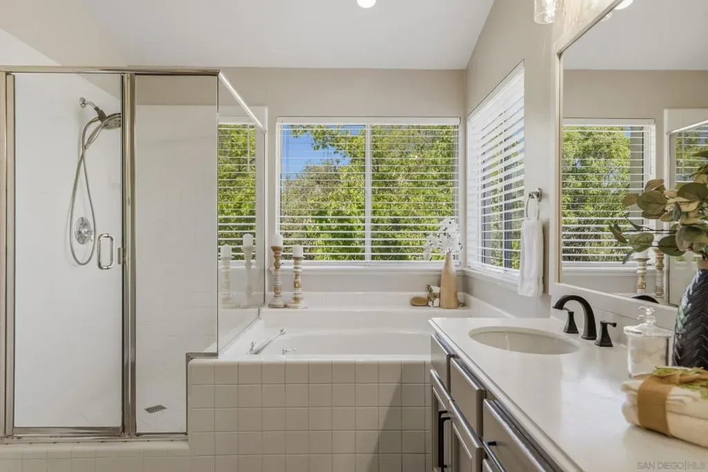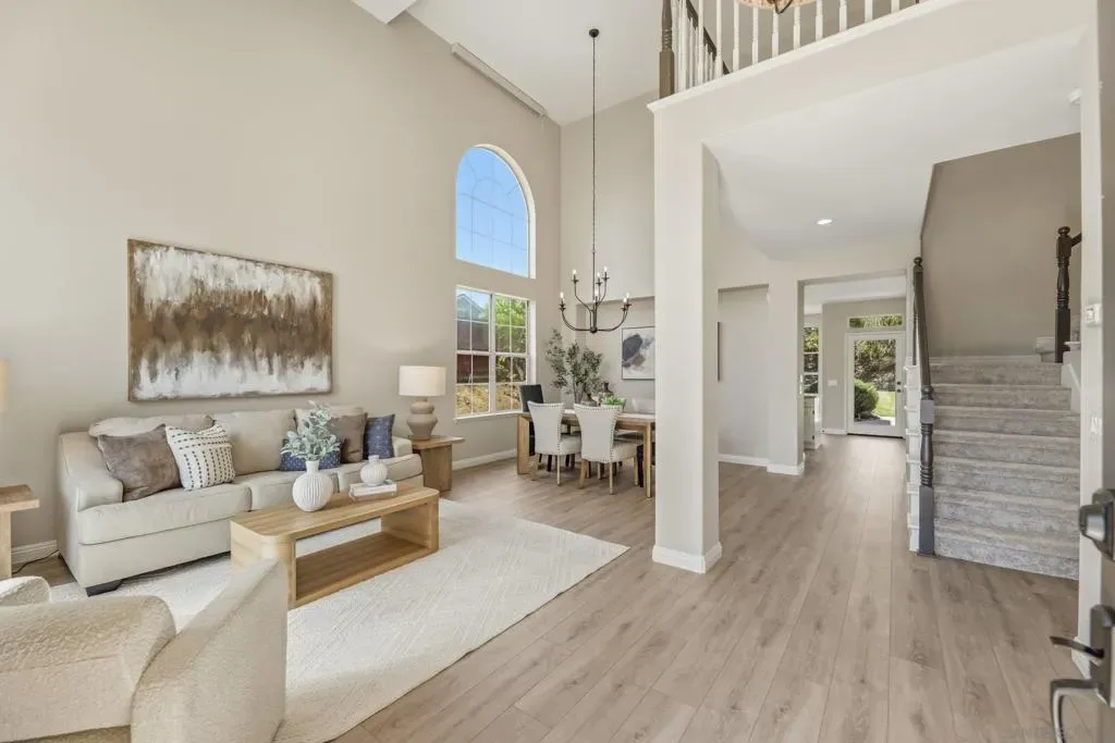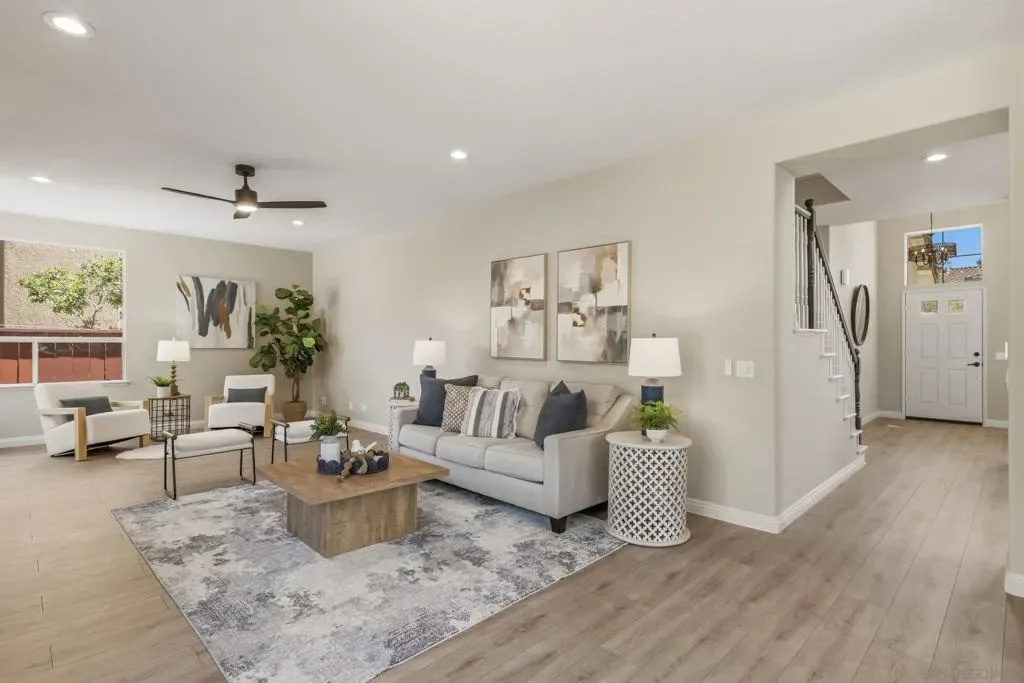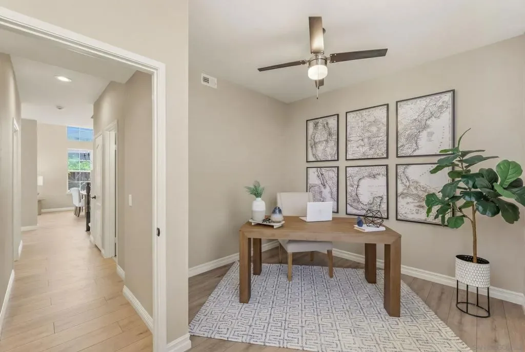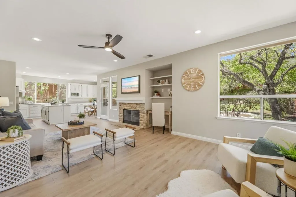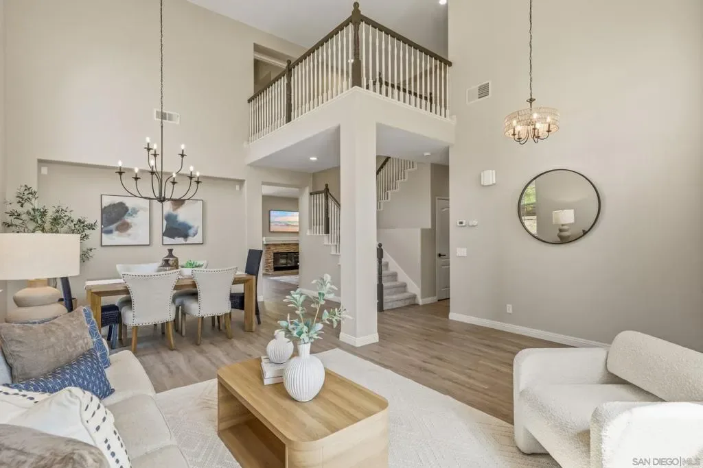 Welcome to your dream home in Park Village — where everyday living feels like a retreat. This stunning home sits on a spacious, private corner lot with fresh flooring, paint, fixtures, and hardware throughout. The soaring two-story great room, chef’s kitchen, stone fireplace, and sun-drenched backyard create spaces made for both entertaining and unwinding. A main-floor optional bedroom/office and full bath add flexibility. Paid solar keeps costs low. And the best part? You’re steps from the trails of Los Peñasquitos Canyon Preserve — San Diego’s most beloved open space. This is Park Village living at its finest. Home Upgrades: Paid Solar: 16 panels Added unpermitted downstairs office 2022, the bedroom is an additional approx 130sqft from the listed sqft (Builder option to add the bedroom in this model). Upgraded downstairs bath and upstairs kids bath 2022. New blinds throughout, exterior home painting- all done between 2022-2024 . Interior painted and new water heater 2026. New Luxury Vinyl Plank flooring 2026 New carpet 2026. New light fixtures in entry, dining room and primary bath 2026. New ceiling fan with light in family room 2026. New interior door handles 2026. New kitchen, primary bathroom and laundry cabinet hardware 2026. Schools: Park Village Elementary, Mesa Verde Middle, Westview High. No HOA. No Mello Roos