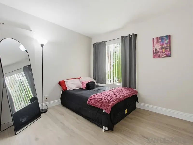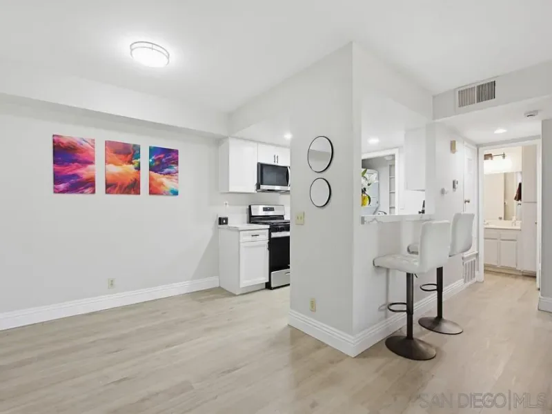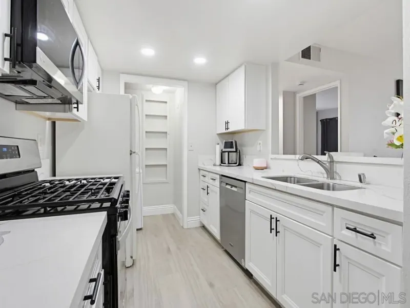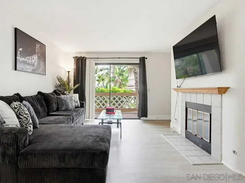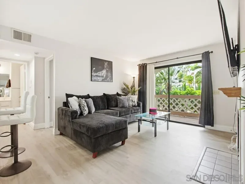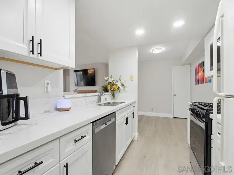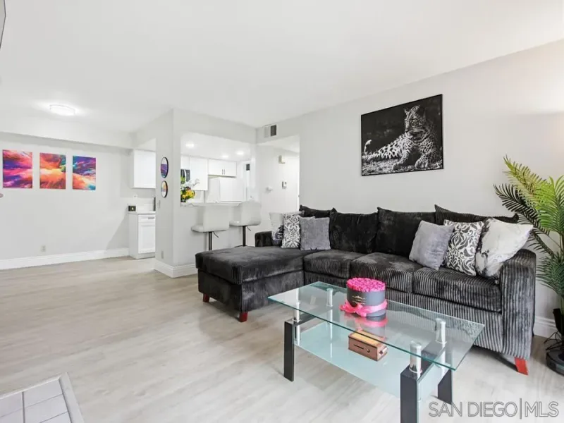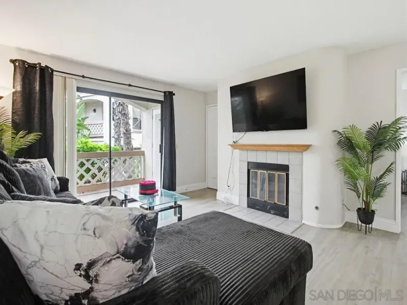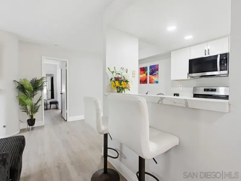 First-floor 2 bedroom, 2 bath home in the highly desirable Casablanca community of Rancho Peñasquitos. Featuring beautiful luxury vinyl plank flooring throughout with no carpet, high-profile baseboards, and abundant natural light, this beautifully updated residence offers comfort and style in an ideal location. The updated kitchen includes newer white cabinetry, quartz countertops, stainless steel appliances, and recessed lighting. A newer HVAC system is a standout feature, providing efficient year-round comfort. The spacious living room showcases a stunning fireplace and opens to a private patio with an additional storage closet. The primary suite features an updated bathroom with a newer vanity, a large walk-in closet, and a ceiling fan, while the secondary bedroom and bath offer excellent storage space. Additional highlights include a stackable washer and dryer located inside, a covered parking space with storage cabinets, and one additional assigned space. Casablanca offers a resort-like setting with peaceful walkways, lush landscaping, tranquil water features, ponds, and multiple pool areas. All within the award-winning Poway Unified School District and close to shopping, dining, the library, and the post office. Great location! First-floor 2 bedroom, 2 bath home in the highly desirable Casablanca community of Rancho Peñasquitos. Featuring beautiful luxury vinyl plank flooring throughout with no carpet, high-profile baseboards, and abundant natural light, this beautifully updated residence offers comfort and style in an ideal location. The updated kitchen includes newer white cabinetry, quartz countertops, stainless steel appliances, and recessed lighting. A newer HVAC system is a standout feature, providing efficient year-round comfort. The spacious living room showcases a stunning fireplace and opens to a private patio with an additional storage closet. The primary suite features an updated bathroom with a newer vanity, a large walk-in closet, and a ceiling fan, while the secondary bedroom and bath offer excellent storage space. Additional highlights include a stackable washer and dryer located inside, a covered parking space with storage cabinets, and one additional assigned space. Casablanca offers a resort-like setting with peaceful walkways, lush landscaping, tranquil water features, ponds, and multiple pool areas. All within the award-winning Poway Unified School District and close to shopping, dining, the library, and the post office. Great location!