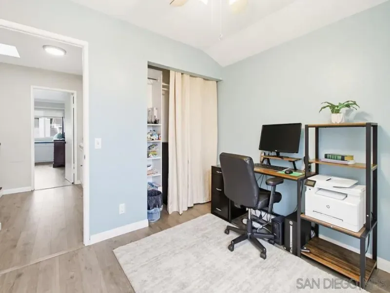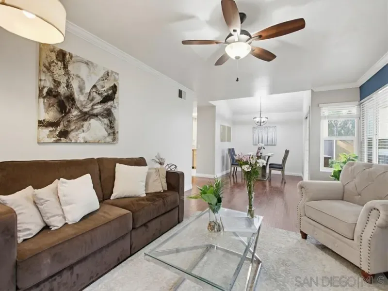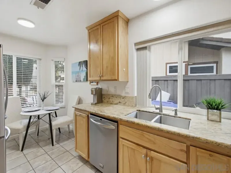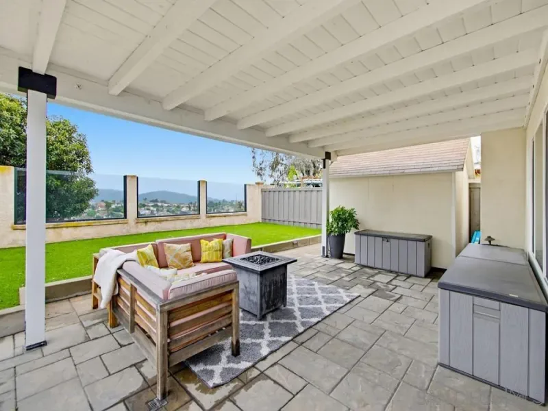 Beautiful 3-bedroom, 2.5-bath home in the highly sought-after Poway School District with amazing mountain views. Features include dual-pane windows, laminate/wood flooring, granite countertops, and a cozy breakfast nook. Enjoy a low-maintenance yard with synthetic grass, covered back patio, and small front patio. 2-car garage with built-in cabinetry, two driveway spaces, two storage sheds, and paid-off solar for energy efficiency. Conveniently located near the 56 & 15 freeways, shopping, restaurants, bike paths, and nature trails. Beautifully maintained 3-bedroom, 2.5-bath home located in the highly desirable Poway School District, offering comfort, efficiency, and exceptional convenience. This property features dual-pane windows, laminate/wood flooring, and granite countertops that complement the bright and functional layout. The kitchen includes a charming breakfast nook perfect for casual dining. Enjoy seamless indoor-outdoor living with a covered back patio, synthetic grass in the backyard, and a low-maintenance yard designed for easy upkeep. A small front patio creates a welcoming entrance, while amazing mountain views provide a serene backdrop. Parking and storage are abundant with a 2-car garage, built-in cabinetry, two additional driveway spaces, and two storage sheds. The paid-off solar system offers long-term energy savings and added value. Ideally located with easy access to the 56 and 15 freeways, and just minutes from shopping centers, restaurants, service providers, bike paths, and nature trails—this home truly combines lifestyle, location, and efficiency.