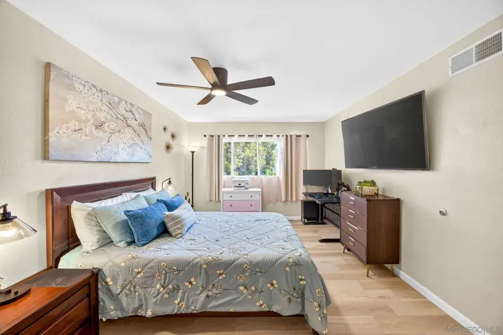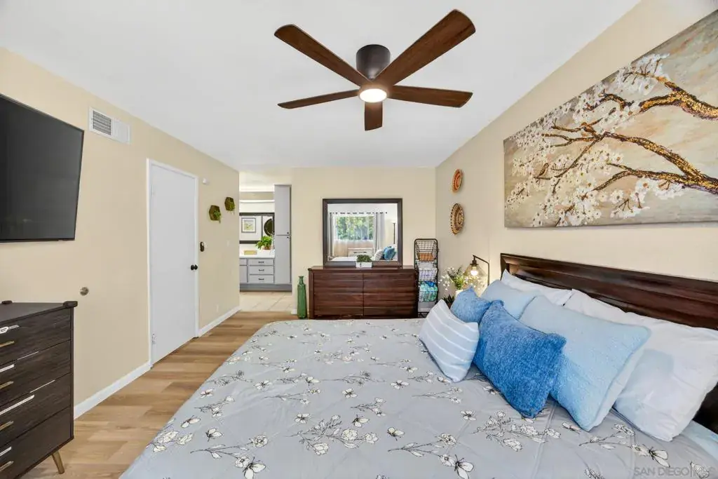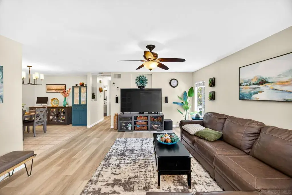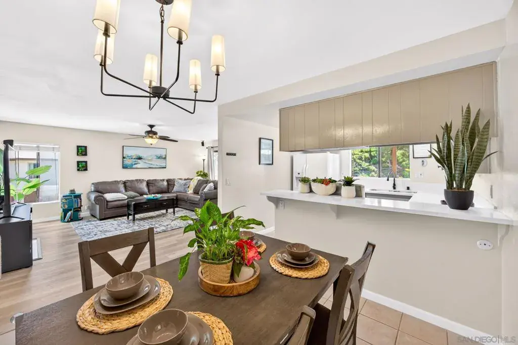 Welcome to 9757 Caminito Cuadro a bright upper-level end unit located in the highly desirable Shadow Tree community of Rancho Peñasquitos. This 2-bedroom & 1.5 bathroom condo offers vaulted ceilings, abundant natural light, and an open-concept living space featuring a cozy fireplace and private balcony perfect for relaxing or entertaining with detached garage. The functional floor plan provides comfortable living with excellent flow, ideal for first-time home buyers, VA buyers, FHA buyers, downsizers, or investors seeking strong rental potential in North County San Diego. HOA includes water, trash, cable, HBO Max, Hulu, Disney+, and Spectrum high-speed WiFi, offering exceptional value and convenience. Residents enjoy access to a community pool, lush landscaped grounds, and guest parking. Located within the award-winning Poway Unified School District and just minutes to shopping centers, parks, hiking trails, and quick access to I-15 freeway providing easy commuting to downtown San Diego, Sorrento Valley, and coastal areas. If you’re searching for a move-in ready condo in Rancho Peñasquitos with top schools, strong amenities, and VA/FHA financing eligibility this is it.