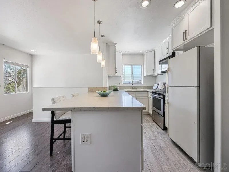 Spotless Turn Key ready 2Bd/1Ba townhouse in the heart of PQ. Fully remodeled upstairs unit with SE exposure floods the open floor plan with natural light. Well sited in a quiet and elevated part of the complex.. Deep Peninsula island anchors the Heart of the home, and makes entertaining a delight! Amazing kitchen with lots of storage, quartz counters, dishwasher, SS appliances. See SUPP for more details… Fresh paint * Laminate and tile floors* ceiling fans * in-ceiling lights * in-unit laundry * custom bathroom and shower * spacious closets with mirrored doors * shared garage! Walk to Poway Unified schools, shopping, restaurants, EZ freeway access and short 15 min drive to the beach to enjoy breathtaking daily sunsets.. Make this cozy house YOUR HOME today!