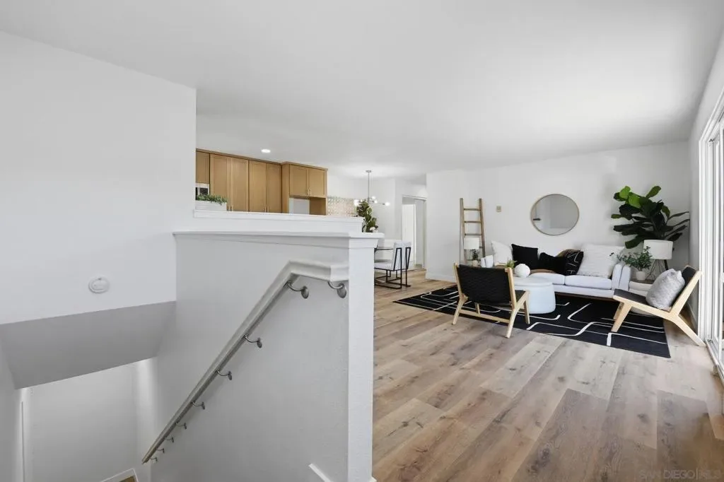 Welcome to this beautifully fully remodeled home in the highly desirable Rancho Peñasquitos community, where modern upgrades meet everyday comfort. Step inside to discover a bright and airy open-concept living space, enhanced by abundant natural light, fresh white interior paint, and stunning wide-plank wood-look vinyl flooring throughout. Extra-tall crisp white baseboards add a refined touch to the clean, contemporary aesthetic. The thoughtfully updated kitchen features light wood cabinetry with all-new brushed silver hardware, sleek white countertops, a stylish white backsplash, and brand-new stainless steel appliances including a microwave, oven, and dishwasher. Enjoy scenic views right from your kitchen window, creating a serene backdrop for daily living and entertaining. Both bathrooms have been fully remodeled with modern finishes, offering a cohesive and elevated feel throughout the home. Step outside to your private balcony—perfect for relaxing or enjoying the peaceful surroundings. Located in a sought-after neighborhood known for its top-rated schools, nearby parks, and convenient access to shopping, dining, and major freeways, this home offers the ideal blend of comfort, style, and location.