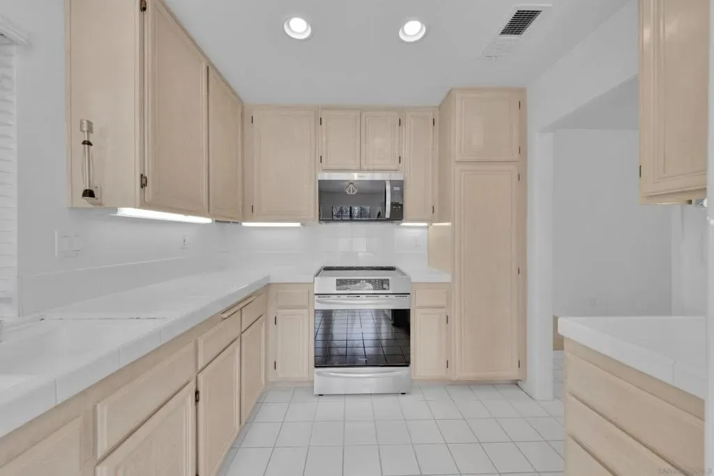 Welcome to this beautiful single-level Sabre Springs home designed with comfort, functionality, and everyday living in mind. Owned solar system (4.32 kW, 12 panel) in a private location with no neighbors behind (open space directly behind property). Abundance of natural light throughout, with fruit trees, and just minutes from shopping. The kitchen features stainless steel stove/oven, microwave, and dishwasher, complete with private breakfast nook. The thoughtful floor plan offers excellent bedroom separation. The primary suite is privately situated and features ample space along with an en-suite bathroom. Additional bedrooms are located down the hall and share well-appointed bathrooms. Enjoy the added benefits of owned solar, helping provide energy efficiency and long-term savings. The home also backs to peaceful green space, creating a sense of privacy and a serene backdrop. Convenience continues with a dedicated laundry room located near the garage entry, along with an attached garage offering additional storage and easy access to the home. Located in a highly desirable neighborhood with low HOA fees, this home is perfectly situated near freeway access, shopping, dining, and everything North County San Diego has to offer.