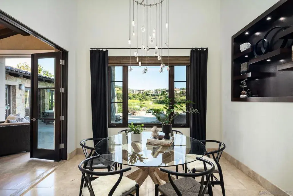 Resting behind the gates and above the 13th green of the award winning Santaluz golf course, this home blends timeless design with effortless California living. Vaulted and groin ceilings, arched passages, hand-finished stone, and rich wood beams create interiors that feel both elevated and inviting, while walls of glass frame uninterrupted fairway views. The elegant kitchen—anchored by Taj Mahal quartzite, tailored cabinetry, and top of the line appliances—opens seamlessly to refined gathering spaces designed for intimate evenings and elegant entertaining. The 1st floor master suite is a private sanctuary with marble finishes, heated floors, dual dressing rooms, and its own fireplace. A guest casita, home theater, wine cellar, executive office, and billiards lounge complete the experience. As you step outside, you’ll find a saltwater pool and spa, culinary pavilion, outdoor fireplace, and citrus grove unfold against panoramic golf course vistas—creating a setting that feels quietly resort-like. Owned solar, integrated Savant smart-home technology, advanced water filtration, and energy-efficient systems are seamlessly woven into the home’s timeless aesthetic, delivering modern sustainability without compromise. An elevated retreat within the gates of Santaluz—where design, privacy, and lifestyle align.