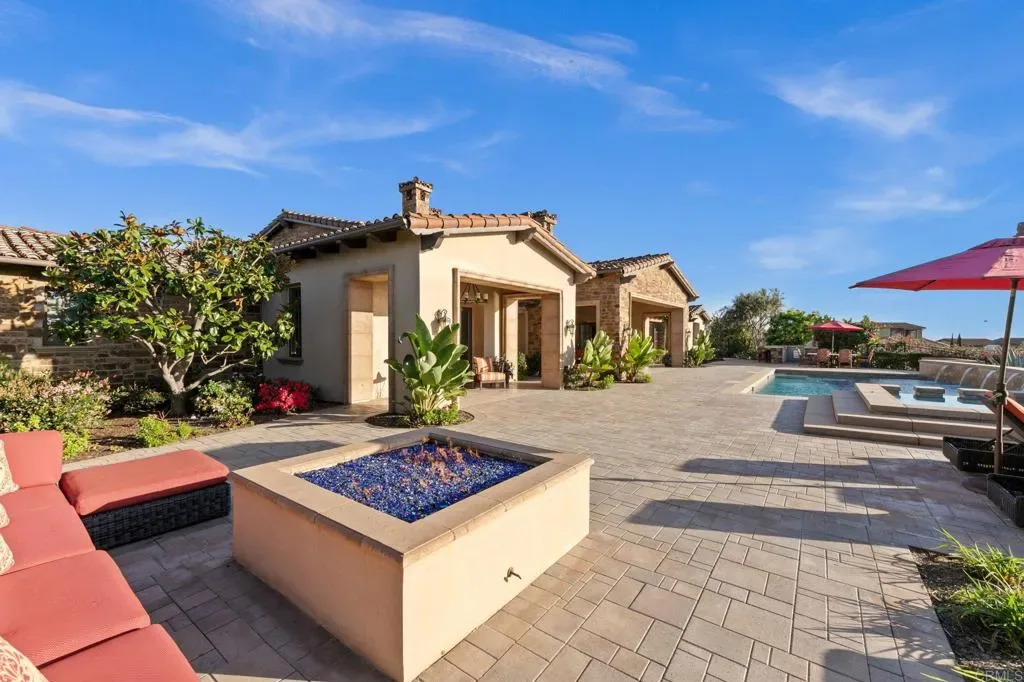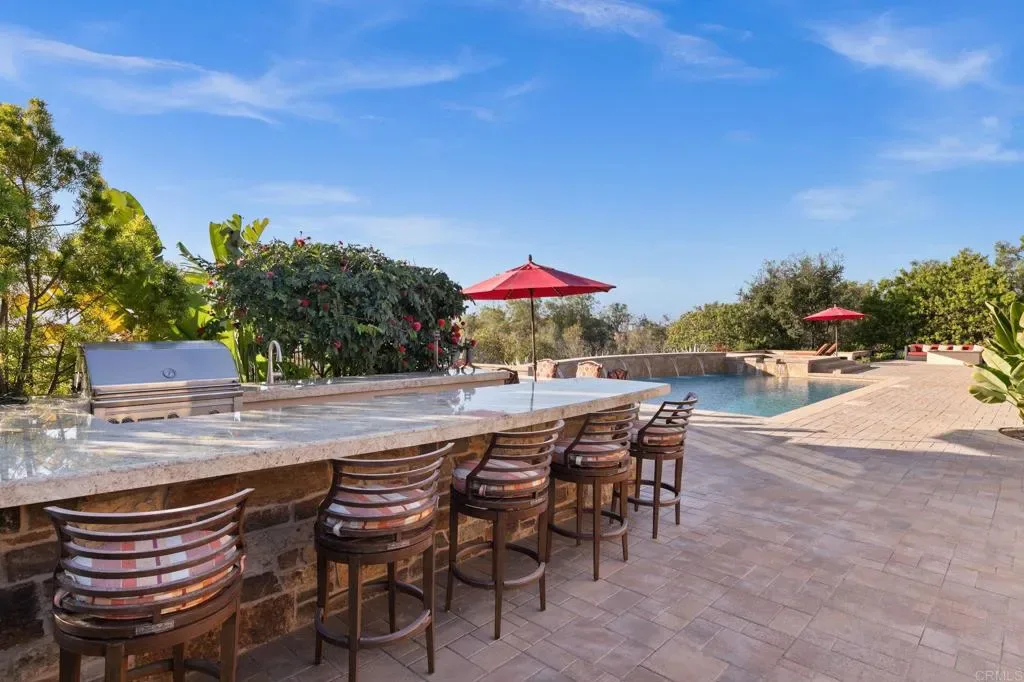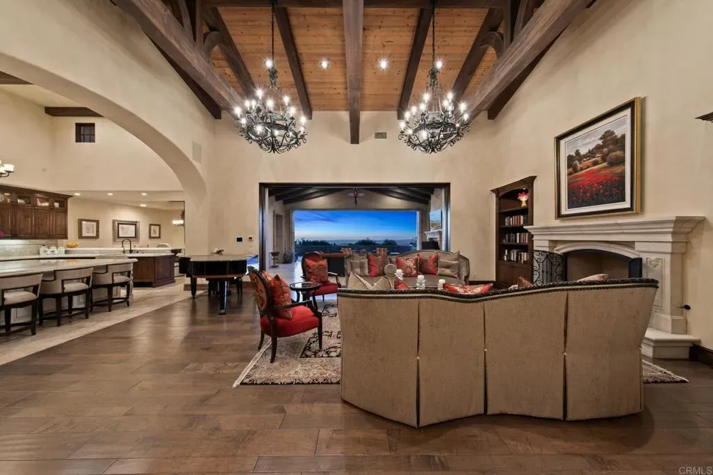 Welcome home to this extraordinary, private single-level estate in the prestigious gated community of Santaluz! This home is perfectly positioned on a quiet cul-de-sac that captures sweeping westerly views all the way to the Pacific Ocean. Designed for luxurious indoor-outdoor living, the property offers an array of exceptional outdoor spaces. Enjoy the fully equipped outdoor kitchen, sparkling pool and spa, inviting fire pit, and a lush grassy play area accented by a tranquil fountain. The Outdoor California Room is an entertainer’s dream…complete with a fireplace, overhead heaters, and TV, while showcasing breathtaking sunset views each evening. The primary suite is a secluded sanctuary of refined elegance, featuring a private covered terrace and an intimate fireside sitting lounge designed for quiet relaxation. A thoughtfully appointed in-suite laundry area and built-in Wolf coffee system add everyday convenience with elevated sophistication. The spa-inspired bath is a true retreat, showcasing a sumptuous soaking jetted tub, dual water closets, an indulgent steam shower, and expansive custom-designed walk-in wardrobes crafted to the highest standard. The chef’s kitchen is beautifully appointed with a Wolf range and French cooktop, premium appliances including a Miele coffee system, quartzite countertops, and both a butler’s pantry and walk-in food pantry. A temperature-controlled 1,800-bottle wine cellar adds to the home’s impressive amenities. The grand dining room showcases box-beamed ceilings and doors that open to a charming front courtyard with fountain. Throughout the home, you’ll find wood-cased archways, wood-beamed ceilings in the great room, and abundant natural light from thoughtfully placed skylights. Integrated home automation enhances modern living. Additional highlights include four en-suite secondary bedrooms, an executive wood-clad library with fireplace, custom bookcases and built-in desk, owned solar, and an oversized four-car garage. No expense has been spared, this is truly a one-of-a-kind estate, masterfully designed to embrace endless ocean views and unforgettable sunsets.