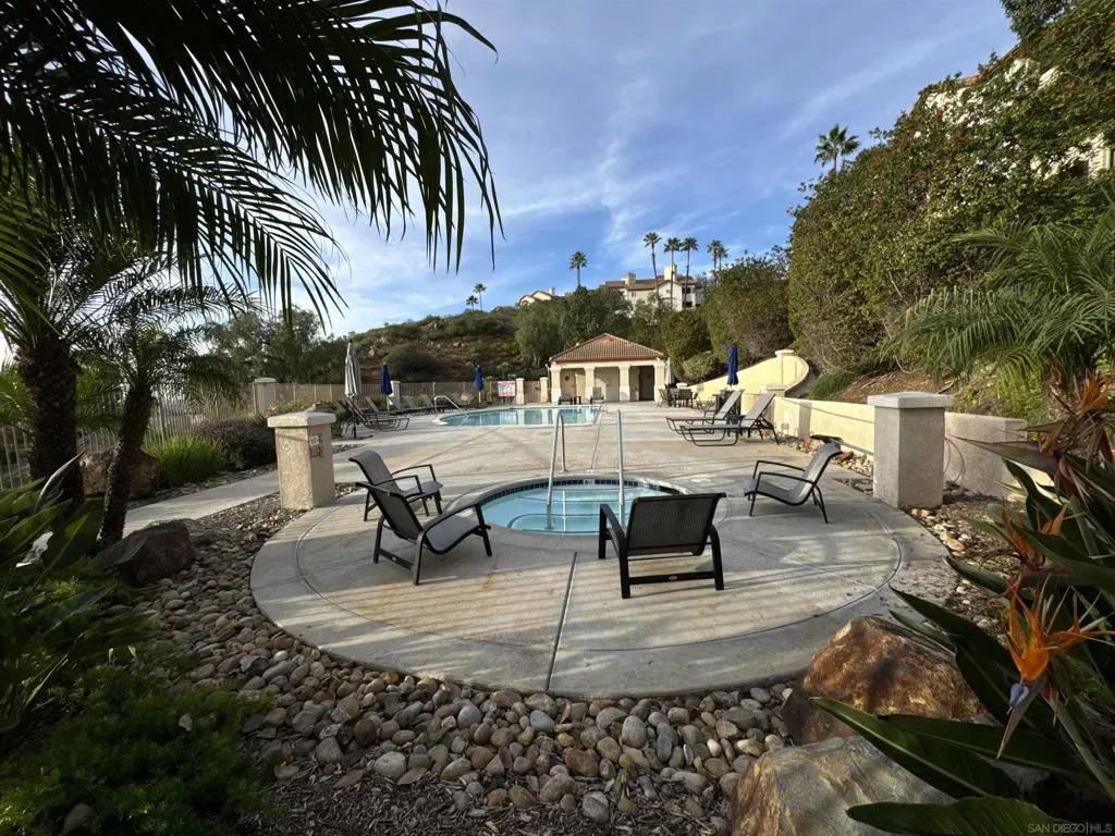 This rare ground floor, end unit townhome features stunning panoramic western views from almost every room. The open-concept design lays out well for the whole family, with bedrooms strategically located on opposite sides of the main living area. Flooded with abundant natural light, the living area features a cozy fireplace for relaxing evenings. Includes a full-size washer/dryer in-unit and a 2-car garage located directly across from your front door. Take a dip in the beautiful pool or unwind in the relaxing spa. Located just minutes from the I-15, making your daily drive a breeze.