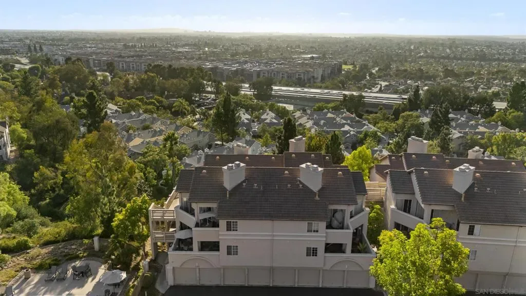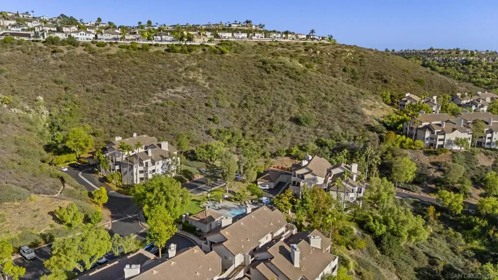 The absolute best location within the Affinity community in Scripps Ranch, this 2-bedroom, 2-bath condo with a coveted 2-car tandem garage combines privacy, upgrades, and lifestyle in one exceptional offering. Ideally situated next to one of the community pool and spa areas, yet tucked along the quiet side of the building. Enjoy hillside-facing eastern views with minimal freeway noise. With no one below and only one shared wall, the setting feels elevated and private. The residence also features (see suppl) one of the largest balconies in the complex, a true extension of your living space, perfect for BBQs, lounging, entertaining, or simply enjoying the peaceful outlook. Inside, fresh interior paint in a modern grey and white palette creates a light, welcoming feel. The fully remodeled primary bathroom offers a clean, spa-inspired retreat. The kitchen is equipped with stainless steel appliances, while the second bedroom features a tremendous built-in closet and drawer organization system with additional hanging space, maximizing functionality. Additional conveniences include central A/C and a full-size interior laundry area. The oversized 2-car tandem garage adds rare value and generous storage. Affinity residents enjoy resort-style pools and spas, beautifully maintained grounds, proximity to Lake Miramar trails, neighborhood parks, popular restaurants, everyday services, and easy freeway access. An ideal first-time buyer opportunity or perfect lock-and-leave home in one of Scripps Ranch’s most convenient communities.