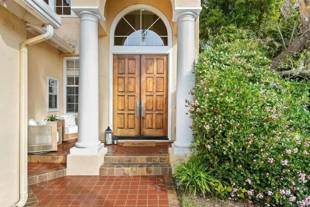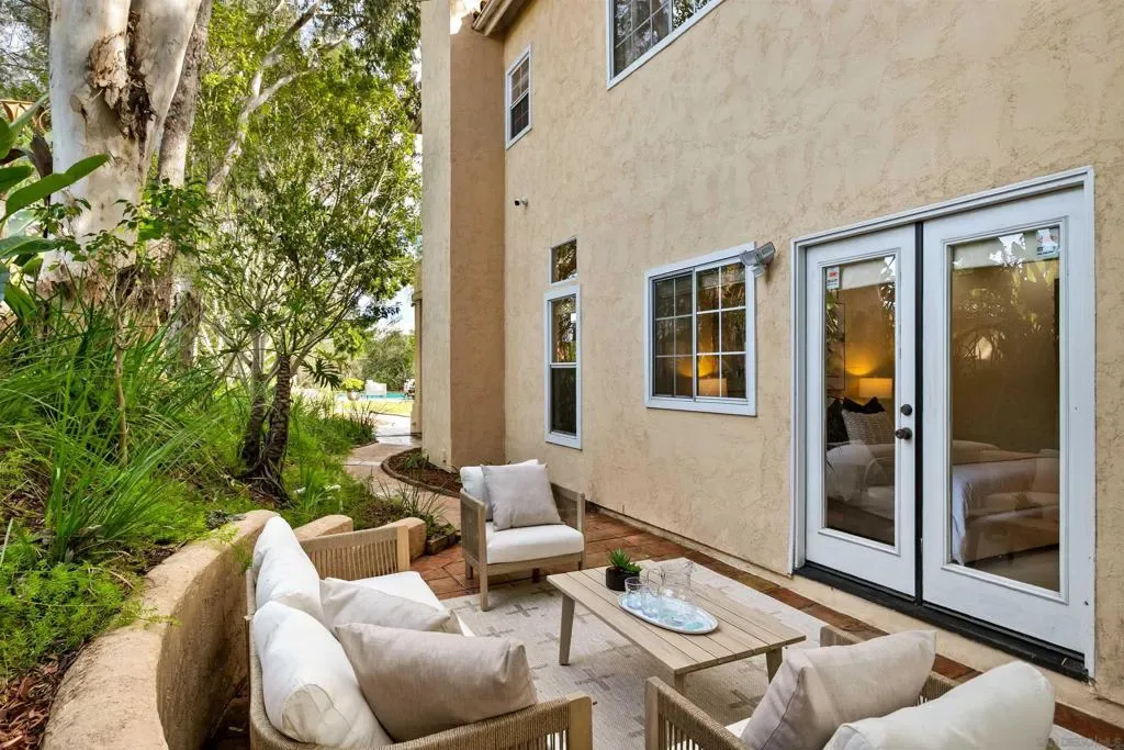 Nestled on an expansive corner lot in Scripps Ranch, this prestigious residence offers elegance, comfort, and architectural significance inside and out. The showcase resort-style backyard features a 75-ft Olympic-length heated pool, surrounded by Saltillo-tiled patios and multiple outdoor areas with lush landscaping, creating an ideal setting for both grand gatherings and intimate evenings framed by mature trees that provide exceptional privacy. Inside, soaring ceilings, stacked windows, and four sets of French doors fill the home with natural light, creating seamless indoor-outdoor living. The chef’s kitchen includes refaced cabinetry, new appliances, and a cozy eat-in nook. The flexible floor plan includes a lower-level bedroom with a full bath and private patio, perfect for guests, multigenerational living, or a home office. Details include solid oak hardwood floors, marble tile, new carpeting, custom built-ins, two fireplaces, and recessed lighting. The primary suite features dual walk-in closets, a spa-like ensuite with a separate soaking tub, and an outdoor balcony. Additional features include a three-car garage with epoxy floors, built-ins and custom stand-up attic storage, upgraded HVAC, a new water heater, a camera security system, and a separate laundry room. With no rear neighbors and only one side neighbor, this property offers privacy while being close to Lake Miramar, top-rated schools, and parks, truly capturing the Scripps Ranch lifestyle.