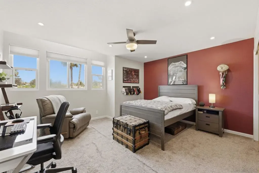 Welcome to this beautiful 4 bedroom 3 bath Scripps Ranch home on a culdesac street with a private & quiet yard with views! Highly desired floor plan with vaulted ceilings, natural light, bedroom and full bathroom downstairs. Features remodeled chef’s kitchen and eat-in area open to family room. Main bedroom suite with balcony views and spa-like bathroom. All baths have been upgraded. Minutes from Lake Miramar, Lakeview Park, top-rated schools, freeway access, restaurants & shopping. No HOA, no Mello Roos! Too Many Upgrades to Mention – Remodeled Kitchen with Granite Countertops, Newer Stainless Steel Appliances including gas stove. All Baths Extensively Remodeled. Newer Roof. Newer HVAC. Downstairs has been upgraded with tile floor that looks like wood plank. Custom fireplace mantle and tile surround in the living room. Laundry room with storage. Perched on an elevated location higher than rear neighbors which provides a peaceful view. San Diego indoor-outdoor living with backyard oasis – perfect for entertaining. Short walk to Lakeview Park and trails to Lake Miramar with 5 mile path for walking, running & biking, picnic areas, boat & bike rentals. Close to the library, Starbucks, Trader Joe’s, Home Depot, movie theater, highly rated schools, Miramar College & more. Convenient for commuting for freeway access, restaurants, and shopping centers. A great place to live and play. This is a Must See!
