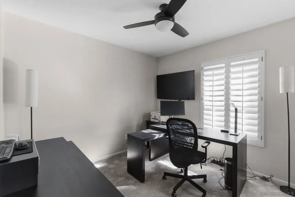 Tucked into a quiet back corner of the neighborhood, 11815 Cypress Valley Drive offers privacy, space and thoughtful upgrades in one of Scripps Ranch’s most desirable pockets. Set away from traffic with a large private driveway, this home is designed for both comfort and functionality. Inside, you’ll find dual and triple pane windows throughout, central heating and air, upgraded lighting inside and out, and owned solar for energy efficiency. The kitchen features appliances all under five years old, making it move-in ready for everyday living and entertaining. The flexible floor plan includes a full bedroom and full bathroom on the first floor, ideal for guests, multigenerational living, or a home office. Upstairs, the remodeled primary suite is a true retreat, complemented by custom California Closets for exceptional storage and organization. Step outside to a private backyard with a pool and outdoor living space, perfect for relaxing, entertaining, or enjoying San Diego’s year-round sunshine. Drip irrigation keeps the landscaping low maintenance and efficient. Located within the highly regarded Scripps Ranch community, the home is close to top-rated schools including Ellen Brown Elementary, Marshall Middle School, and Scripps Ranch High School, along with nearby parks, trails, shopping, and freeway access. A rare combination of privacy, upgrades, and location, this home delivers the lifestyle Scripps Ranch is known for.