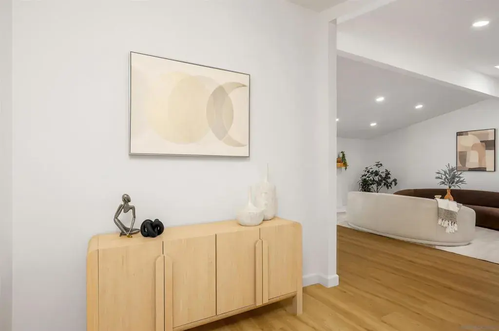 Conveniently located in the highly sought-after Serra Mesa neighborhood, this stunning 2,100 sq ft home with owned solar panels has been fully reimagined from top to bottom. Situated on a 7,700 sq ft lot, this four-bedroom, three-bathroom residence offers privacy and tranquility while still being just minutes from everything San Diego has to offer. As you approach the home, you’ll be welcomed by a spacious green front lawn, a two-car garage, and a mature Tipu tree providing the perfect shade on warm summer days. Step through the character-rich front doors into a thoughtfully designed foyer that opens to a bright, open-concept kitchen and dining area. Custom cabinetry with designer-quality finishes, smart appliances, and luxury vinyl plank flooring throughout make this 1960-built home feel modern and refreshed. Enjoy cozy evenings by the wood-burning fireplace or relax in the oversized great room featuring high vaulted ceilings. Step outside through the breezeway to your private backyard retreat, complete with a mature lemon tree and sweeping views. Additional highlights include an oversized primary suite with an ensuite bathroom and walk-in closet, abundant hallway storage, and natural light enhanced by solar tubes. Two generously sized secondary bedrooms and an additional bedroom with its own ensuite bathroom provide flexible living options for guests or multigenerational living. Homes like this are rare. Don’t miss the opportunity to make it yours.