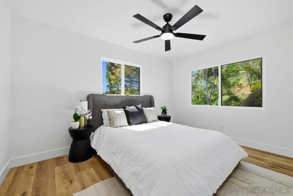 Experience elevated living in this stunningly renovated home in the heart of University City, just minutes from La Jolla beaches, premier dining, shopping, and coastal attractions. Designed with both elegance and comfort in mind, this residence has been completely transformed from top to bottom. Step inside to an expansive open-concept layout filled with natural light, luxury vinyl flooring, new windows, new electrical panel, new roof, and a statement fireplace that anchors the main living space. The chef-inspired kitchen serves as the centerpiece of the home, showcasing gorgeous quartz countertops, custom finishes, and seamless flow into the main living areas. A bedroom and full bathroom on the main level offer added flexibility for guests, multigenerational living, or a home office. Designed for effortless indoor-outdoor living, Cantina doors open to both the front and backyard, creating a true entertainer’s setting complete with a gas firepit offering many spaces to gather. The primary suite is a standout retreat, featuring its own 10ft Cantina door that opens to a large private deck with serene mountainside views and lush greenery, offering a peaceful indoor-outdoor escape. Every detail has been thoughtfully curated to deliver a modern, sophisticated aesthetic with timeless appeal.