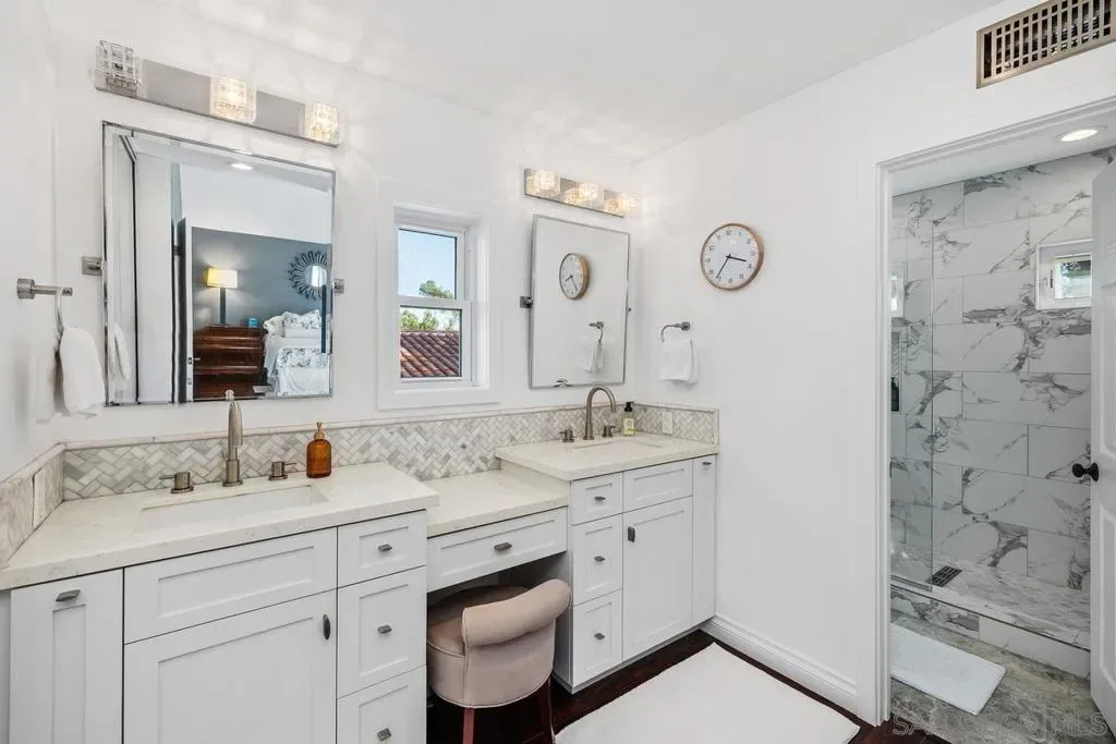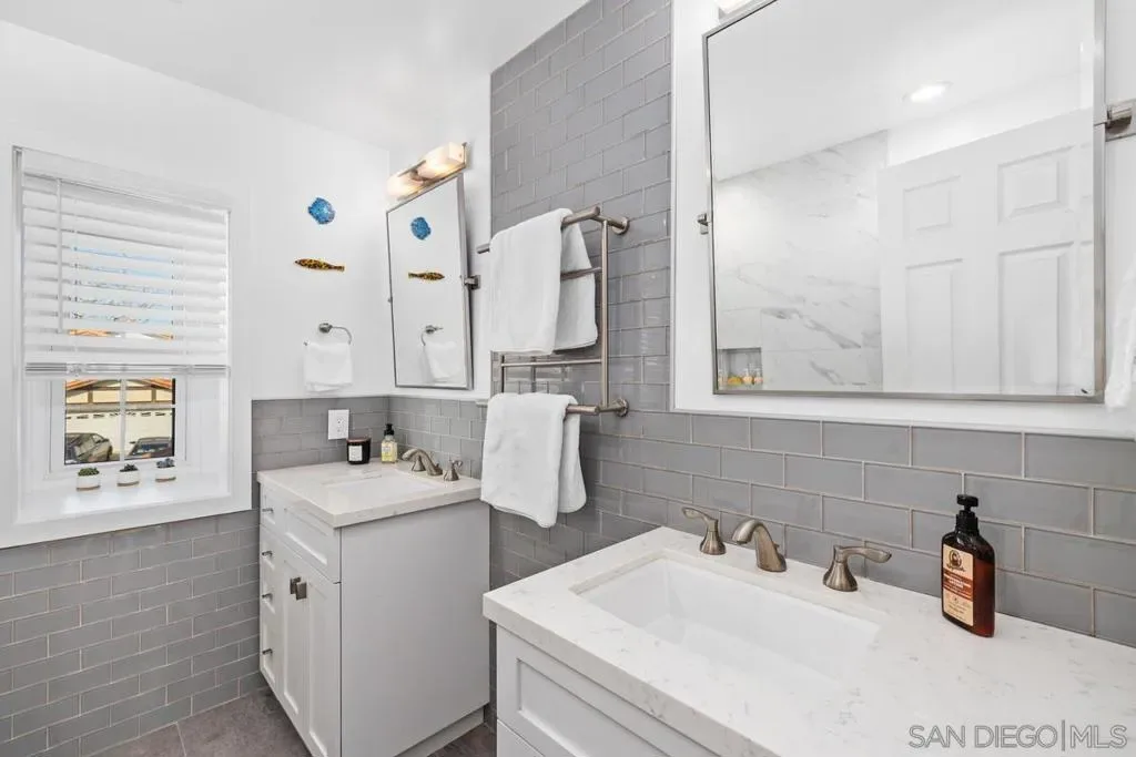 Stunning remodeled home in highly sought-after University City, ideally situated on a large corner lot on a quiet cul-de-sac. This gorgeous and sun-filled home features soaring high ceilings, an open and airy floor plan, and beautiful hardwood floors throughout. The meticulously updated kitchen is designed for both everyday living and entertaining, featuring a premium Wolf range and seamless flow into the main living area. Expansive windows and thoughtful design create exceptional indoor/outdoor living, perfect for enjoying San Diego’s year-round sunshine. Highly desirable layout includes a downstairs bedroom and full bath—ideal for guests, multigenerational living, or a home office. Upstairs, the spacious primary suite offers a private retreat with an impressive 8-foot slider that fills the room with natural light and enhances the open feel to the balcony. Step outside to your own backyard oasis complete with a sparkling pool, ample space for entertaining, and room to relax or play. The large corner lot provides added privacy and curb appeal. Extensive upgrades include remodeled bathrooms, newer roof, HVAC system, concrete driveway, and fresh exterior paint, offering both style and peace of mind. Turnkey and move-in ready, this exceptional home is just minutes from top-rated schools, parks, shopping, dining, and all that University City has to offer. Welcome home!