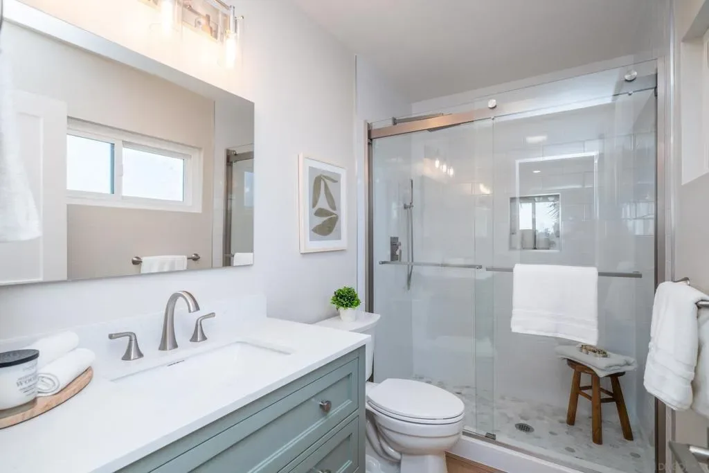 Set on a generous lot with gated RV parking and exciting ADU potential in the heart of highly coveted University City. This tri-level residence has been thoughtfully redesigned, expanded, and refined inside and out to create a home that feels cohesive, comfortable, and move-in ready. Offering four bedrooms, 2.5 baths, and 1,868 square feet of expanded living space, the home balances flexibility with timeless design. At the center of the home is a beautifully reimagined kitchen with quartz countertops, all-new stainless steel appliances, and a convenient seating peninsula overlooking the expansive grassy backyard and patio. The permitted oversized family room expansion is huge, with its own wet bar and beverage/wine refrigerator, cozy fireplace, and downstairs half-bath, offering a retreat where everyone can relax, play, or unwind. Every ceiling has been smoothed and finished with recessed lighting throughout. Fresh interior and exterior paint in carefully selected designer tones gives the home a sharp yet timeless look. San Diego’s enviable climate gets even better here, with a quiet whole-house fan, an upgraded HVAC system, and a dedicated mini-split air conditioner in the expanded family room. The result is a home that stays naturally comfortable and efficient year-round. It’s all economically powered by a 28-panel solar system, fully owned, providing immediate energy savings with no lease or monthly payment. The primary suite offers peaceful seclusion, facing the quiet backyard, complete with a wall to wall mirrored wardrobe closet and a beautifully remodeled bath featuring a spa-inspired walk-in shower. Two additional bedrooms also include mirrored wardrobe closets, while the oversized fourth bedroom with its own private walk-in closet provides flexibility for guests, a home office, or multigenerational living. The secondary bath has been fully remodeled with a new vanity and tub shower combination, continuing the home’s thoughtful and cohesive design throughout. The oversized lot includes rare RV parking, room for a pool and significant ADU potential, offering options for extended family, guest accommodations, or future expansion. And if the garage didn’t offer enough space, the oversized shed/outbuilding is perfect for storing all your toys, workshop/garden center, or finish off as an external office. Ideally located near top-performing University City High and Marie Curie Elementary, plus neighborhood shopping, and popular dining, this home is also just minutes from Westfield UTC, the Trolley at UTC, the Golden Triangle employment hub, and the beaches of La Jolla and North County. Don’t miss it!