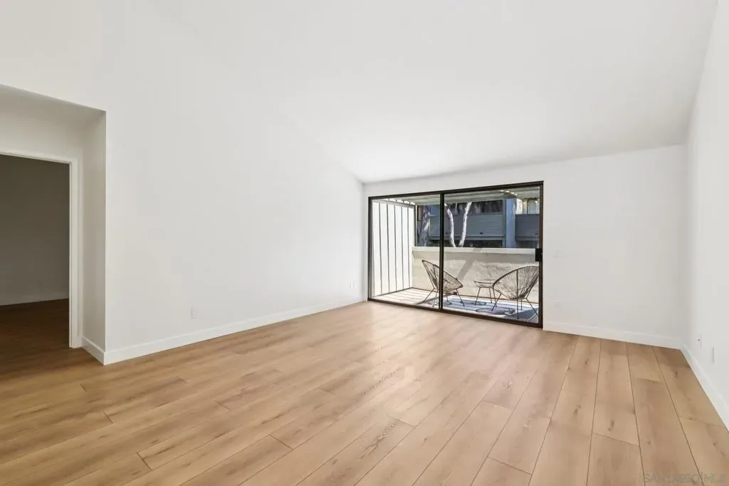 Top-floor condo in desirable University City featuring vaulted ceilings and abundant natural light. This beautifully updated home offers a bright, open layout with spacious living areas and modern finishes throughout. Recent upgrades include COREtec flooring, quartz kitchen countertops, refreshed cabinetry with updated hardware, fresh interior paint, brand-new appliances, window treatments in the bedrooms, and a new garage opener with smart MyQ access for convenient app control. Rare for the community, the unit includes in-unit laundry hookups, offering added flexibility and convenience. The home also features a private one car garage with storage cabinets, an additional assigned parking space (#186), a guest parking pass, along with ample parking on Agee St. The HOA provides excellent value, covering water (including hot water), trash, sewer, a pool, common area laundry, landscaping, exterior electrical, termite coverage, exterior maintenance, and roof. Conveniently located near UCSD, top hospitals, shopping, dining, and within walking distance to the elementary school. Easy access to freeways, public transportation, Westfield UTC Mall, La Jolla, and surrounding beaches. Enjoy convenient access just next door to a grocery store, coffee shops, restaurants, dry cleaners, nail salon, barbershop, and urgent care. A great opportunity in a highly sought-after location for first-time buyers, investors, or anyone seeking a well-located, move-in ready home.