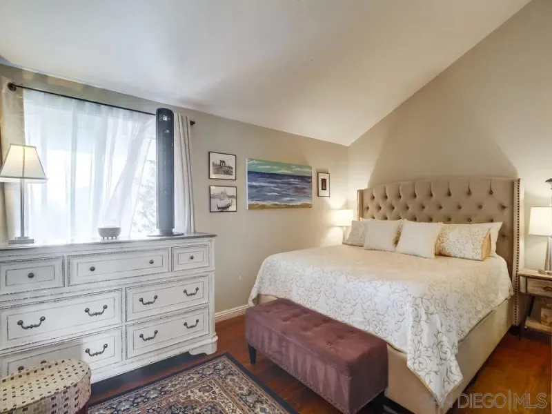 Stunning top floor unit nestled in University City! This gorgeous 1br/1ba unit features a GOURMET kitchen w/newer cabinets, quartz counters & stainless steel appliances. Vaulted ceilings, luxury vinyl floors, updated bath, 1 garage space & permit parking spot. When you step in the door you will be impressed! The large balcony overlooks trees & greenery. This centrally located beauty is close to the beach, freeways, shopping, public library & food. The complex is well maintained & has a sparkling pool. Why on earth would you rent, when you could call this home?!!