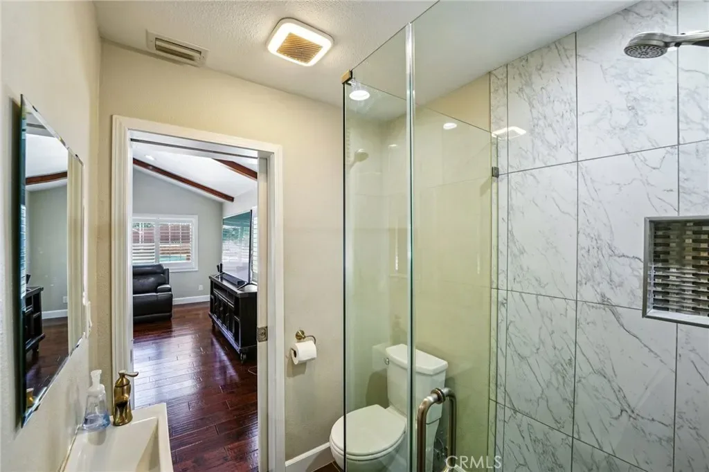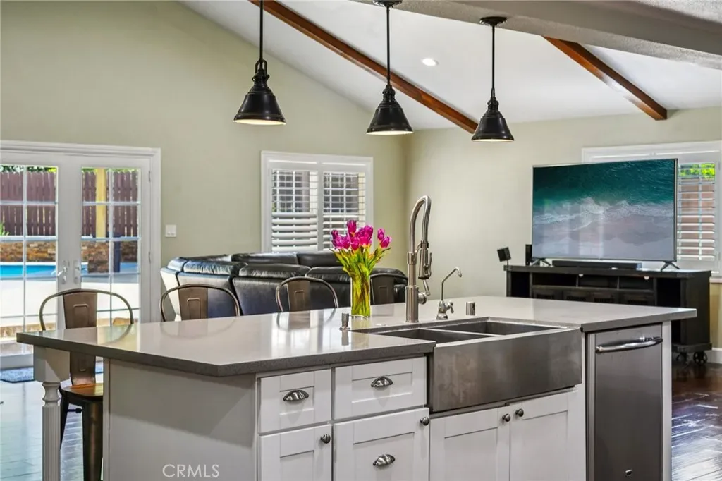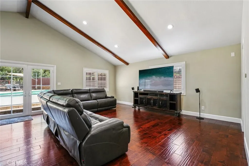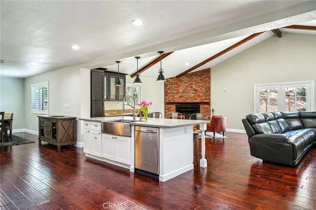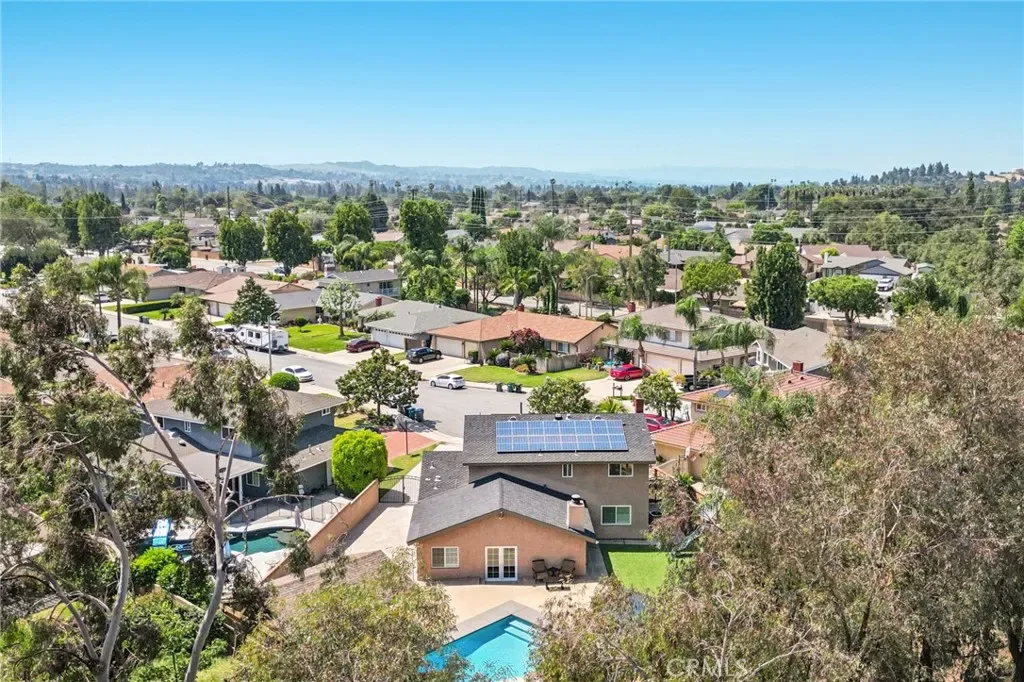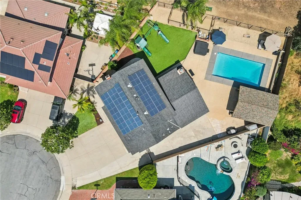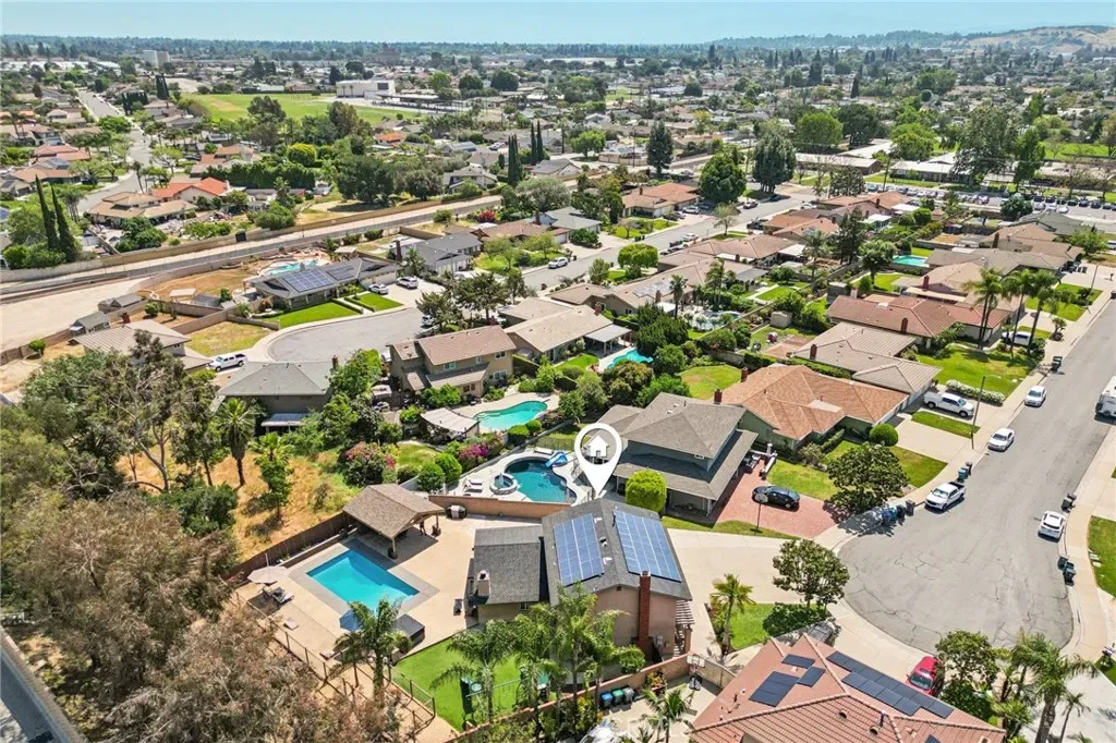 Welcome to this Beautiful Pool home with RV parking, paid solar in San Dimas. Tucked at the end of a quiet cul-de-sac, this upgraded 4-bedroom, 3-bath home offers over 2,400 sq ft of living space on one of the largest usable lots in the neighborhood—an increasingly rare find. Located within the Bonita Unified School District and near convenient freeway access, this home delivers the ideal blend of location, space, and long-term value. Inside, a thoughtfully redesigned open-concept layout enhances flow and natural light. The modern kitchen features Caesarstone countertops, stainless steel appliances, and a large center island that opens to the main living areas. Additional upgrades include engineered hardwood flooring, updated bathrooms, new carpet upstairs, plantation shutters, and energy-efficient features such as a newer AC system, tankless water heater, and 37 fully paid-off solar panels.