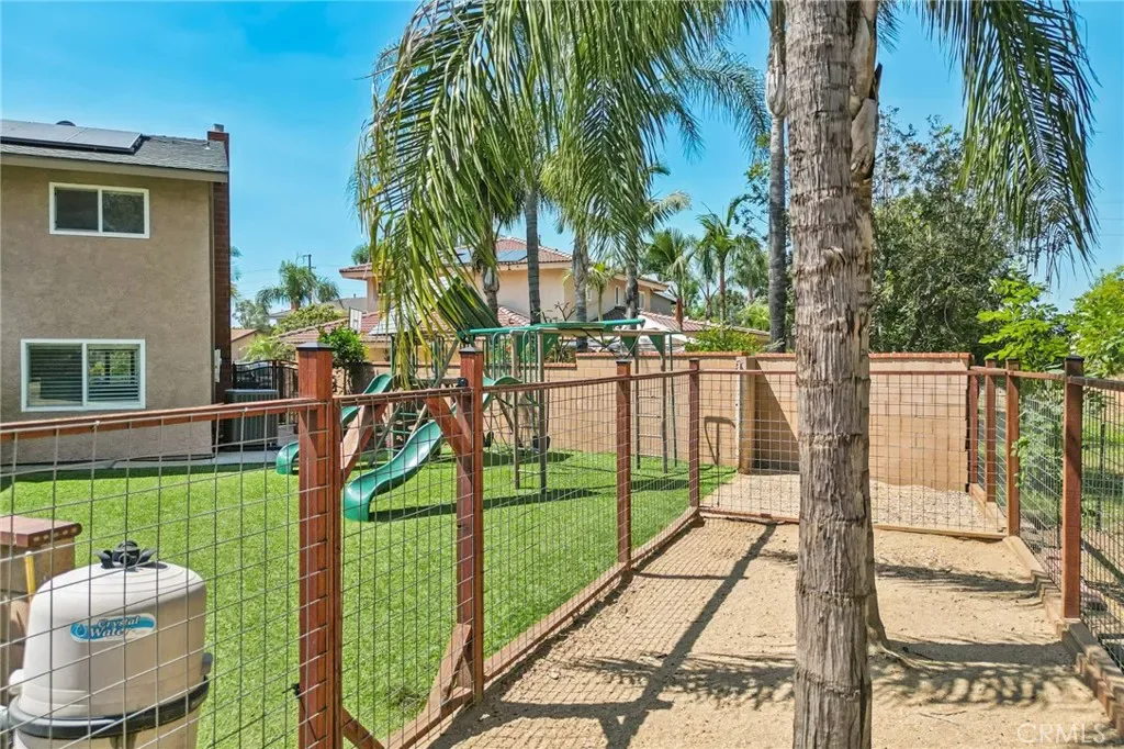 The expansive backyard is designed for both relaxation and entertaining, featuring a pool, covered pergola, turf play area, and above-ground spa. With no direct rear neighbors and gated RV parking, the property offers a rare combination of privacy and versatility.