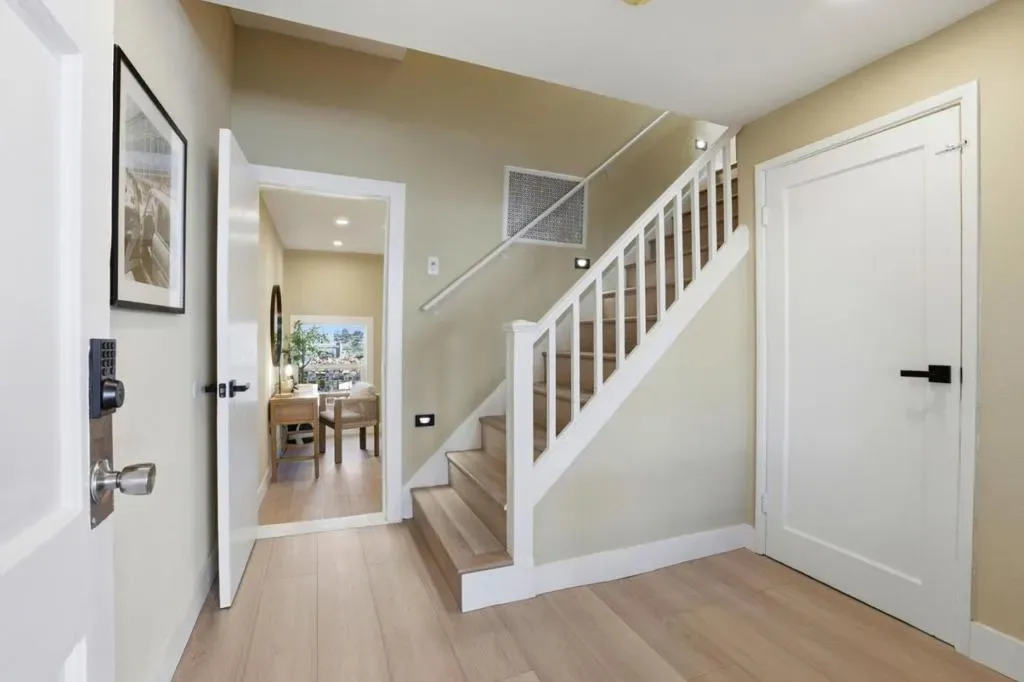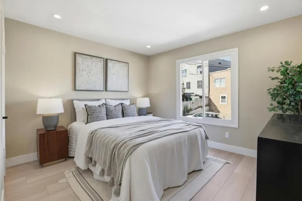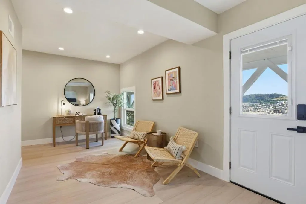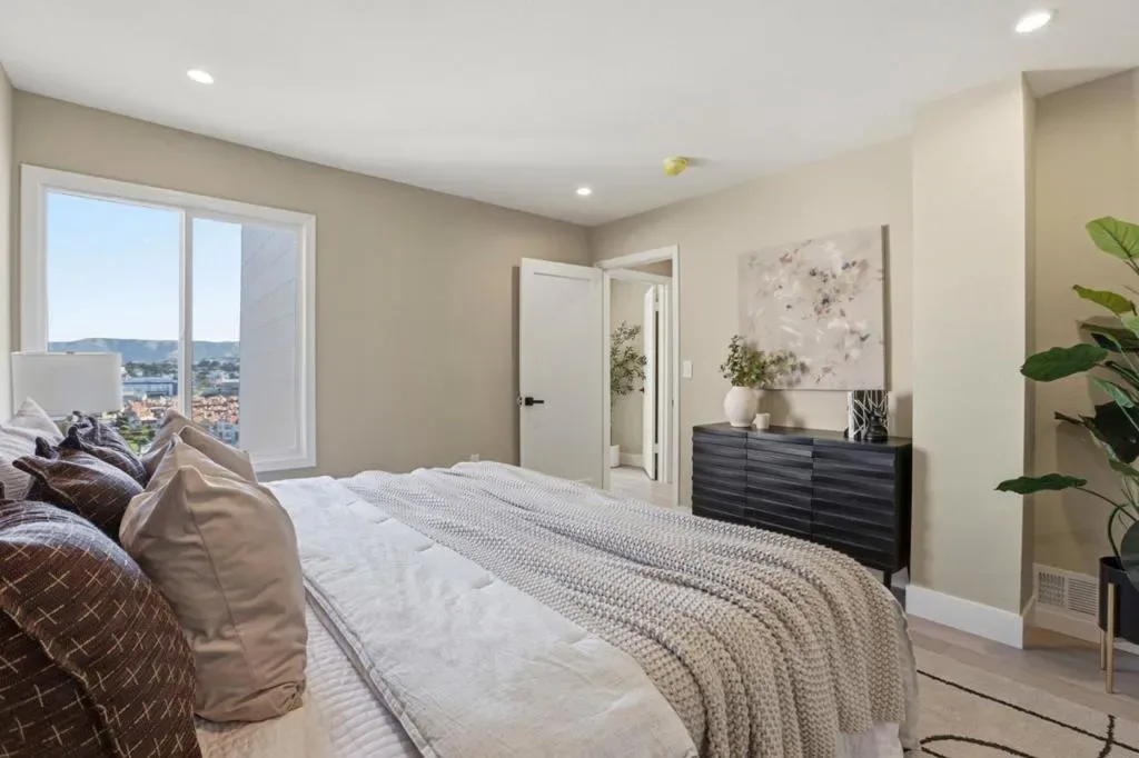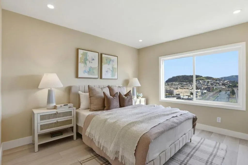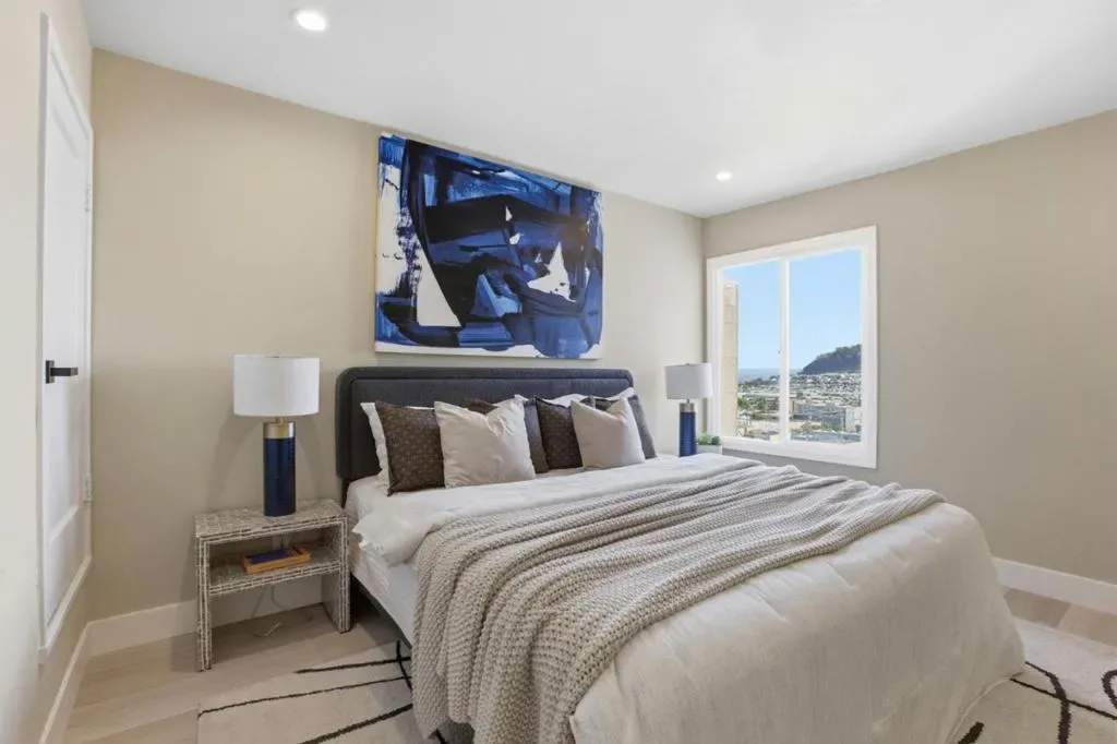 Welcome to this beautifully remodeled two-story home located in the desirable Silver Terrace neighborhood. This modern home offers approximately 1,280 square feet of thoughtfully designed living space, including three bedrooms and one full bathroom on the main level, along with a spacious lower level featuring a large bedroom or versatile living area and an additional full bathroom-ideal for extended family or guest accommodations. Key amenities include a one-car garage, in-garage laundry hookups, and a well-appointed kitchen equipped with a freestanding gas oven and ENERGY STAR® qualified appliances. Situated on a 2,866-square-foot hillside lot, the property is designed for low maintenance and benefits from established curbs and street lighting. One of the standout features of this home is its panoramic views, showcasing the San Francisco Bay, sparkling city lights, and surrounding hills. Conveniently located with easy access to major freeways, public transportation, and neighborhood grocery stores, this home offers both comfort and accessibility. Additional highlights include engineered hardwood flooring throughout, blending modern style with everyday functionality. This turnkey property is a perfect combination of design, convenience, and exceptional location.