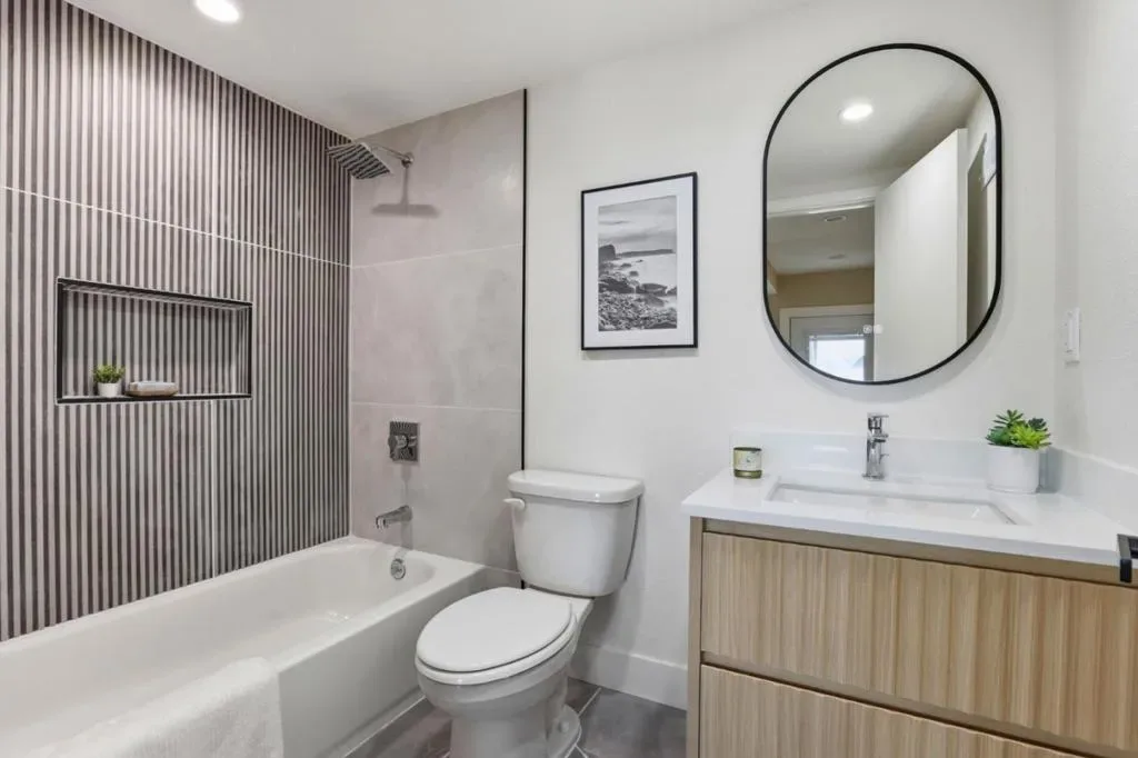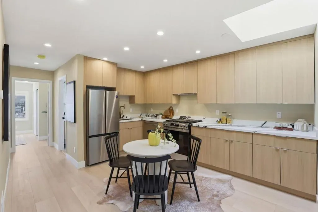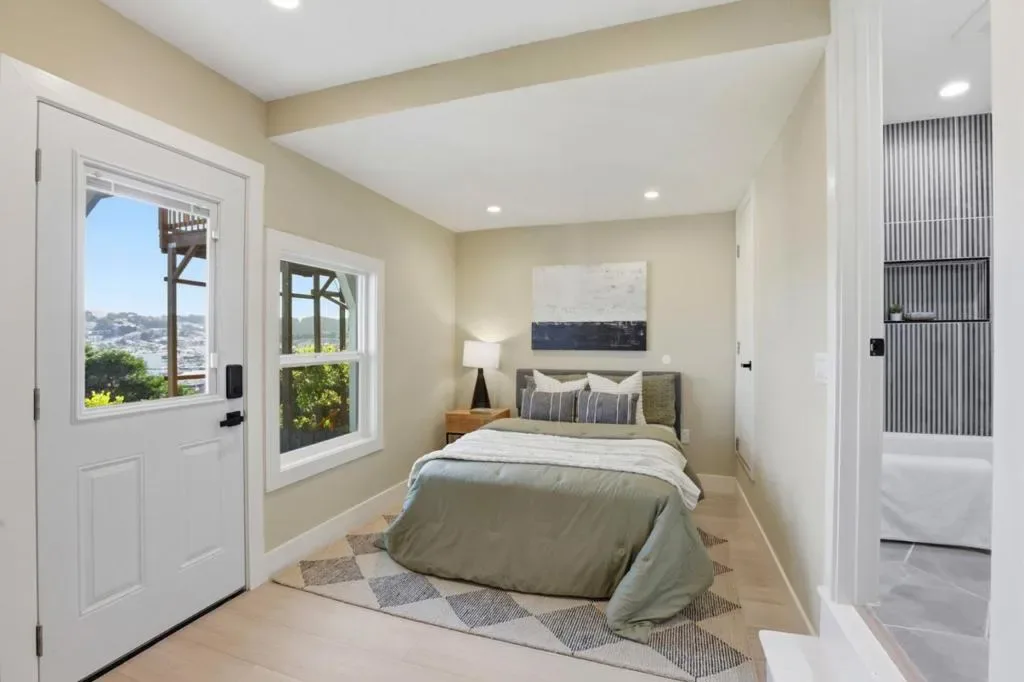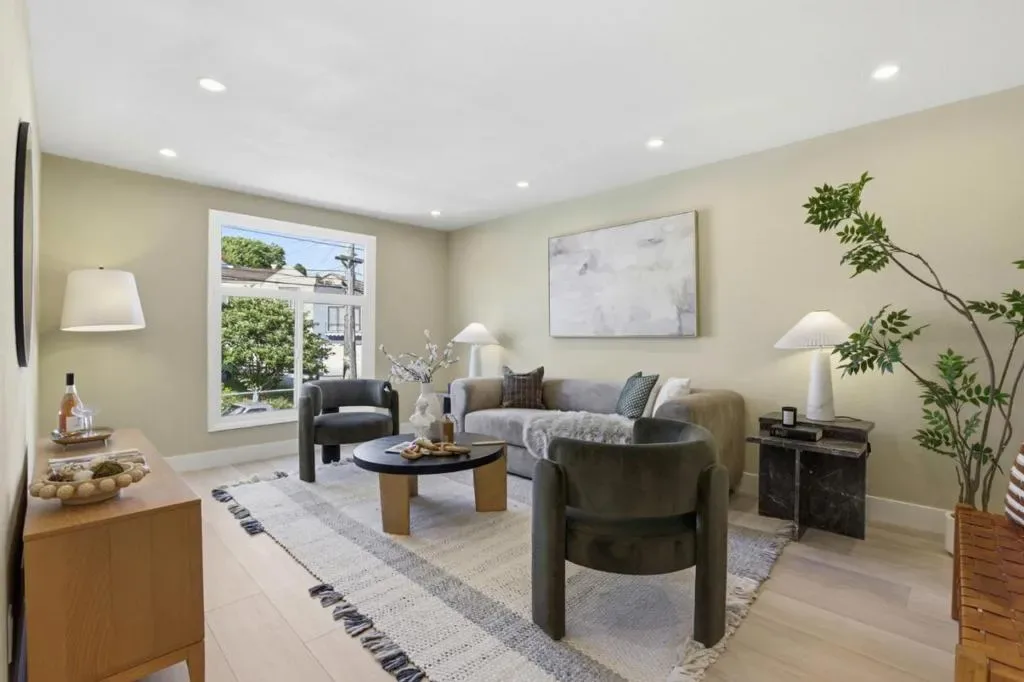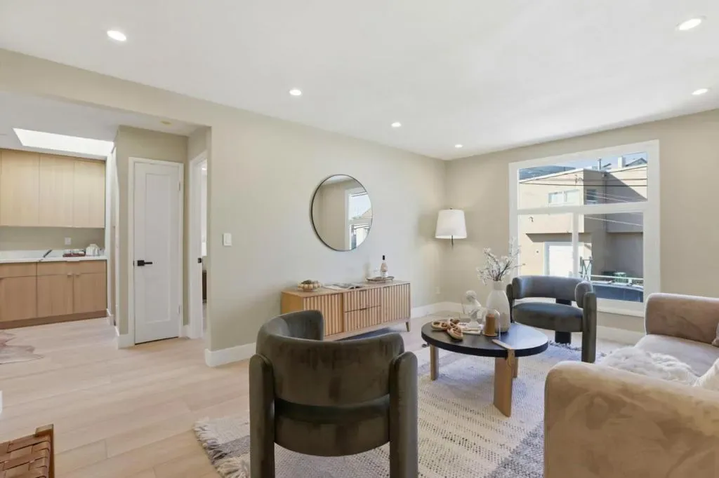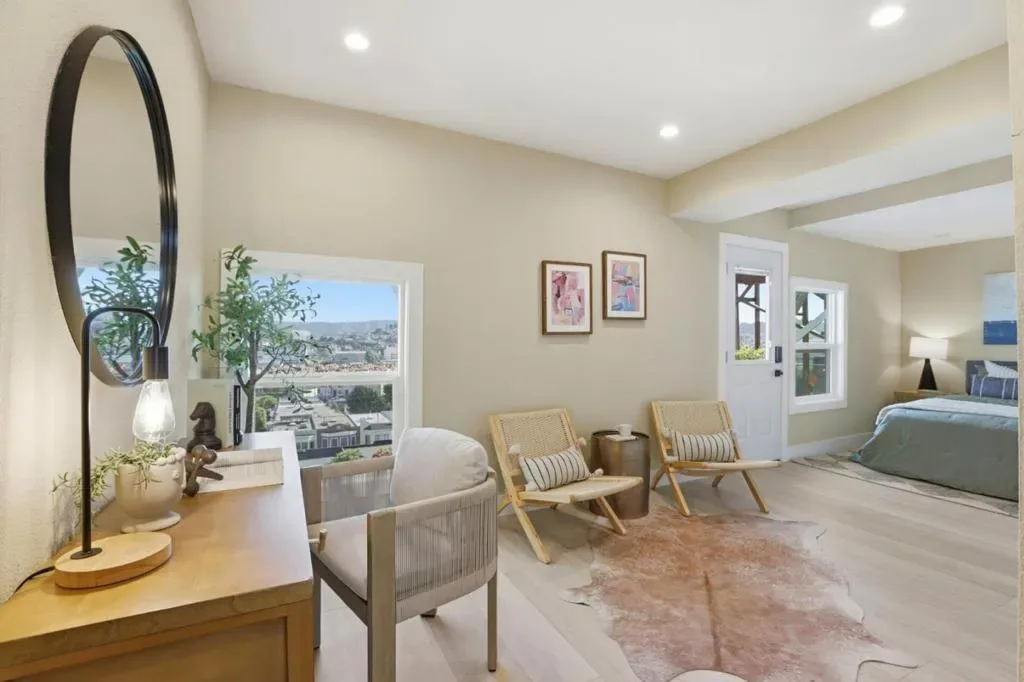 Welcome to this beautifully remodeled two-story home located in the desirable Silver Terrace neighborhood. This modern home offers approximately 1,280 square feet of thoughtfully designed living space, including three bedrooms and one full bathroom on the main level, along with a spacious lower level featuring a large bedroom or versatile living area and an additional full bathroom-ideal for extended family or guest accommodations. Key amenities include a one-car garage, in-garage laundry hookups, and a well-appointed kitchen equipped with a freestanding gas oven and ENERGY STAR® qualified appliances. Situated on a 2,866-square-foot hillside lot, the property is designed for low maintenance and benefits from established curbs and street lighting. One of the standout features of this home is its panoramic views, showcasing the San Francisco Bay, sparkling city lights, and surrounding hills. Conveniently located with easy access to major freeways, public transportation, and neighborhood grocery stores, this home offers both comfort and accessibility. Additional highlights include engineered hardwood flooring throughout, blending modern style with everyday functionality. This turnkey property is a perfect combination of design, convenience, and exceptional location.