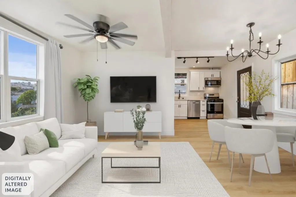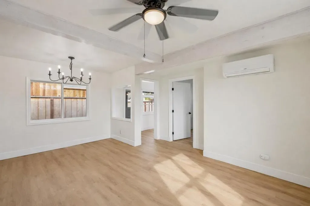 This charming Bernal Heights residence blends modern updates w/classic appeal, surrounded by lush landscaping filled w/mature succulents & greenery & Skyline Views. A gated walkway w/contemporary awnings & distinctive doors opening to the basement. Inside, a formal entry leads to a bright enclosed bonus space framed by a wall of windows, ideal for a home office, studio, or cozy reading nook. The open living & dining areas feature exposed beams & a seamless layout. The remodeled kitchen shines w/crisp white shaker cabinetry, quartz counters, an ageless subway tile backsplash, & a window over the sink overlooking the private rear yard. Recessed lighting & stainless steel appliances complete this stylish & functional space. The bedroom w/closet & 2 windows. A beautifully updated bath offers shaker-style vanity w/ quartz countertop, decorative tile flooring & a tiled shower-over-tub combination. Private outdoor living offers a fenced backyard w/spacious seating area. 2025 upgrades thruout w/permits – Remodeled kitchen, bathroom, windows, walls, paint & beams. New Electrical & upgraded plumbing + New Dual mini-split Heat/AC system for year-round comfort. Sq.ft. as noted on city plans. Some images digitally staged. Accessible street parking. Basement opportunities! SFR (Not condo)
