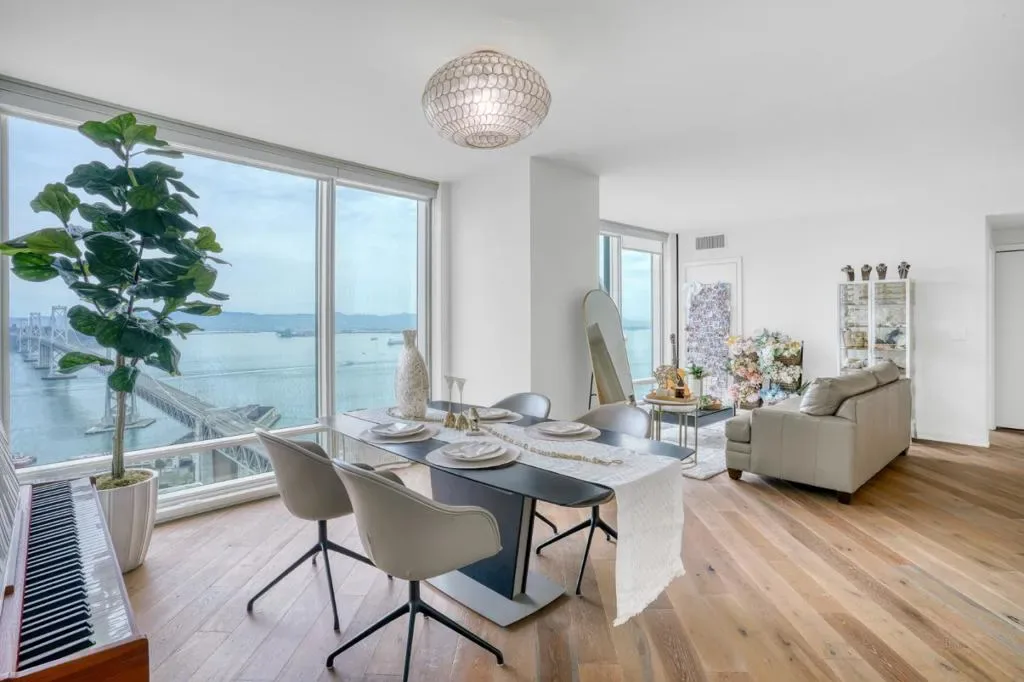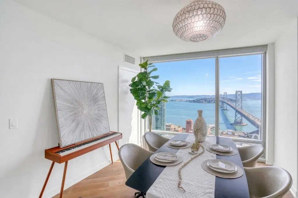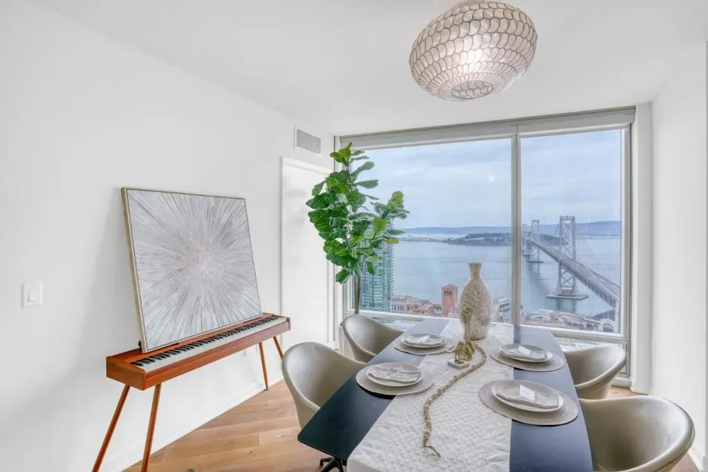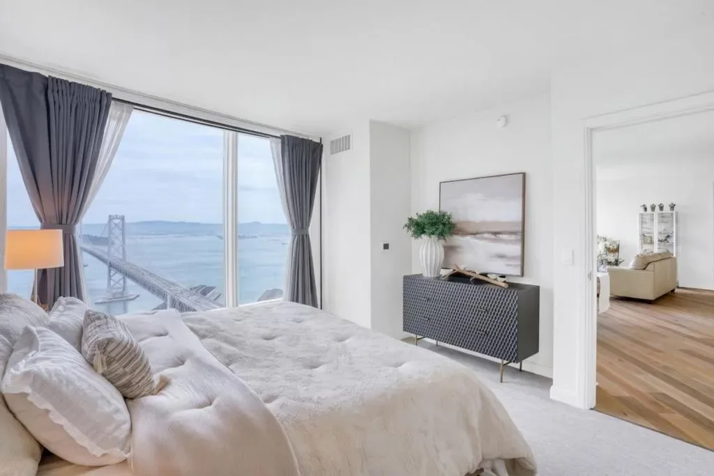 Residence 33D at The Harrison is a statement of refined luxury and timeless design. Crafted by renowned designer Ken Fulk, this home embodies elegance and modern sophistication. The open two-bedroom, two-bath layout is filled with natural light. This home offers mesmerizing bayfront panoramas sunrise over the water, dramatic evening skies and fog rolling over the bay, plus twinkling lights of the Bay Bridge. Floor-to-ceiling windows provide direct sightlines for seasonal fireworks and nightly light displays. A rare combination of luxury building services and community programming (Every household has its own private wine cellar and separate storage room; free yoga and fitness classes are offered every week;Residents also receive complimentary concierge services such as valet parking, printing, mailing, and package delivery right to their doorstep, and more). Unbeatable location: within a ten-minute walk to the Embarcadero waterfront, Financial District and the Salesforce transit hub; a short drive to City Hall, the Dogpatch arts district, Chase Center/Oracle Park and Mission Bay tech headquarters. Major attractions including Fishermans Wharf, the Palace of Fine Arts and the Golden Gate Bridge are approximately a 20-minute drive.