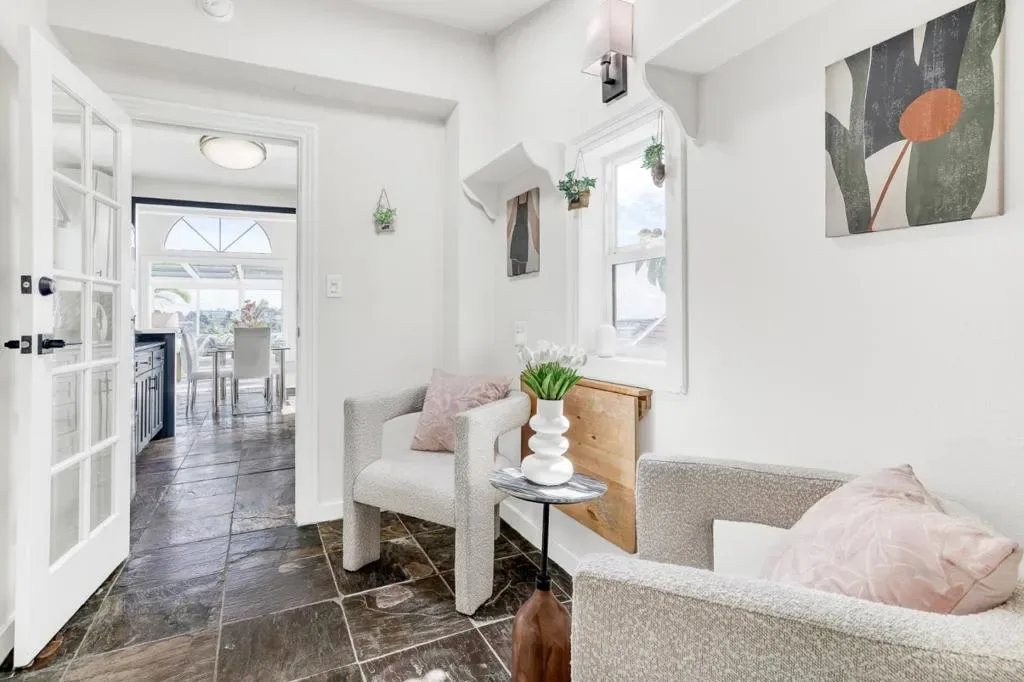 Perched in Bernal Heights, this beautifully preserved detached single-family home offers three bedrooms and three full bathrooms across 1,415 square feet of thoughtfully designed living space. Soaring vaulted ceilings amplify the sense of space and light, while a stunning sunroom frames breathtaking Bay views and the warm micro-climate delivers abundant sunshine year-round. A large front patio sets the tone for indoor-outdoor living, and the home’s two-level layout provides natural privacy between the first and second floors. Recently remodeled with continued improvements over the years, original character blends seamlessly with modern comfort for a truly move-in ready retreat. Steps from Cortland Avenue’s beloved shops and cafes, nearby parks, Muni lines, and freeway access, this home places the best of San Francisco at your doorstep – a rare opportunity to own a classic gem in one of the city’s most sought-after neighborhoods.