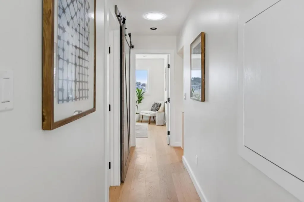 Sophisticated & Contemporary! Perched atop a hill in the highly desirable Ingleside neighborhood, this light-filled split-level residence has been completely renovated down to the studs. Featuring all-new electrical, plumbing systems, & roof, along with a fully permitted lower level, this stunning home offers 3BD/2.5BA with a spacious, open-concept floor plan and sweeping views of city lights, and the San Francisco Bay. Main level showcases an expansive living, dining, and kitchen area designed for modern living. Highlights include elegant quartz countertops, custom cabinetry, high-end appliances, and beautiful white oak hardwood flooring throughout. Abundant natural light fills the space, complemented by smart LED ceiling lighting with customizable color settings to match any mood. The kitchen opens seamlessly through French doors to a large view deck, perfect for relaxing. A primary suite with 1 bath features direct access to the beautifully landscaped backyard. Upper level offers 2BD/1.5BA along with a solar tube skylight that brings in additional natural light. The rear yard is perfect for family gatherings & BBQs. 1 car garage with washer/dryer hookups, EV charging outlet, and a tankless hot water heater. Easy access to Highway 280, bus, CCSF, SFSU, park, Whole Foods & more.