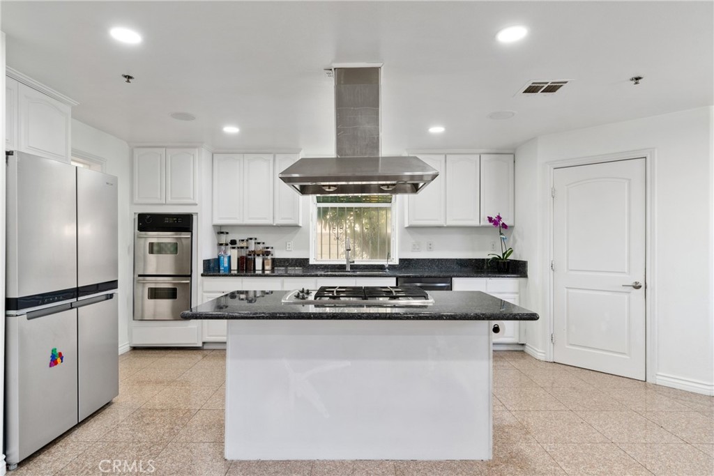 This south-facing Mediterranean-style home, built in 2006, offers 5 bedrooms and 6 bathrooms, with over 3,000 square feet of thoughtfully designed living space. By entering the foyer, what you see is an elegant curving staircase leading upstairs, lighted with a crystal chandelier hanging from the vaulted ceiling. The open floor plan includes a spacious family room seamlessly connected to the main kitchen, along with a large island, granite counter tops, custom wood cabinets, and a separate wok kitchen! The plantation shutters and screens fitted with the windows provide both comfort and functionality.