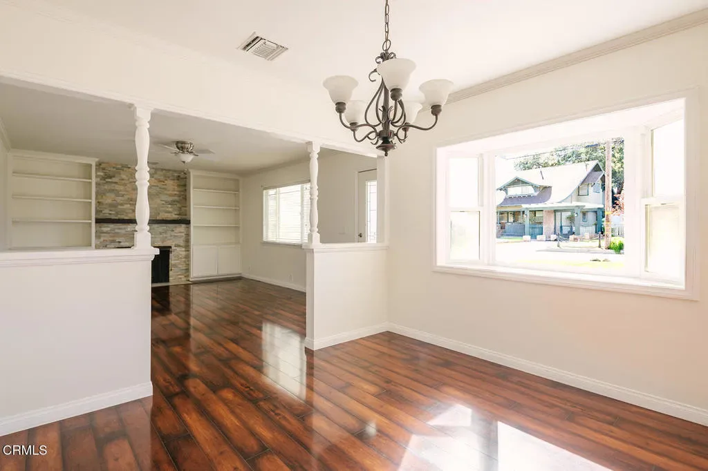 Beautifully remodeled and thoughtfully designed, this spacious single-story San Gabriel home offers a blend of comfort and modern living. From the moment you enter, you are welcomed by a light-filled living room showcasing rich wood flooring, custom built-ins, and a striking floor-to-ceiling stacked stone fireplace. The adjoining dining area flows seamlessly into the updated kitchen, featuring custom cabinetry, granite countertops, stainless steel appliances, and a convenient breakfast bar. The kitchen opens to an expansive family room with tile flooring, dual ceiling fans, a second fireplace, and leads to a covered patio and backyard, perfectly suited for indoor-outdoor living. The primary suite is a peaceful retreat, complete with its own fireplace, two closets, and French doors that open to the patio. The ensuite bath is nicely appointed with a custom-tiled walk-in shower, quartz vanity, and a separate soaking tub. There are three additional good size bedrooms and two more bathrooms which complete this lovely home. Additional highlights include a detached two-car garage with overhead storage, central air and heat, dual-pane windows, and a freshly painted interior. Ideally located near Trader Joe’s, Howie’s Market, and a variety of shopping and dining options.