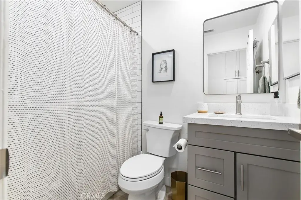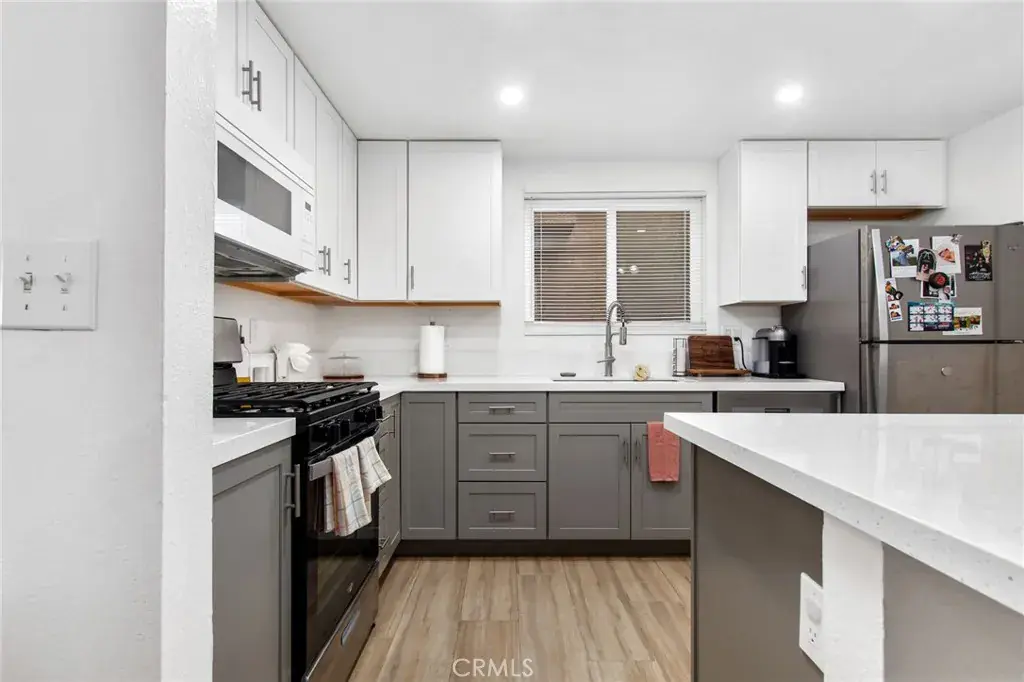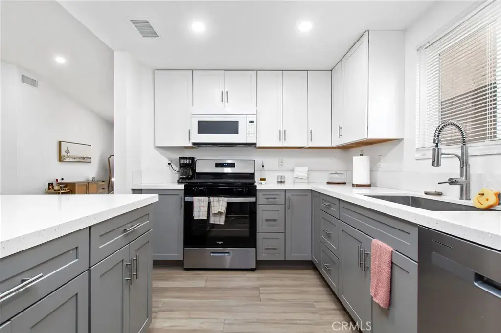 Both the primary and guest bathrooms have been fully renovated with shaker cabinetry, quartz counters, and newly tiled showers. The floorplan provides defined living and dining areas with direct access to the backyard. This home also features LED recessed lighting and newer windows.