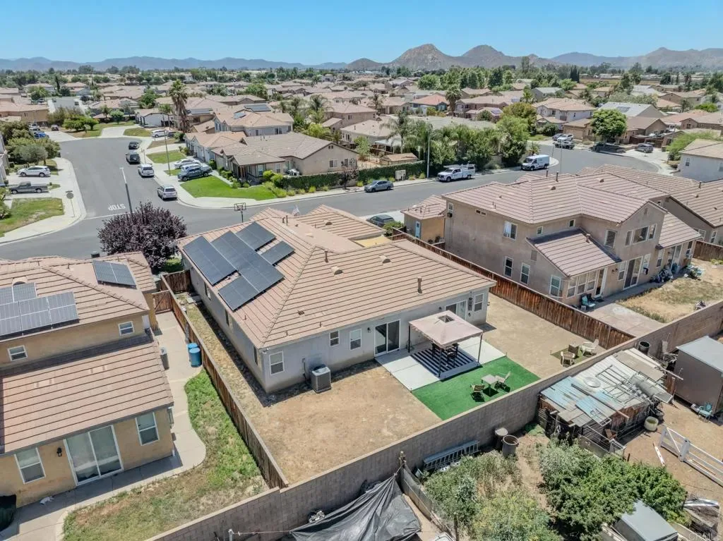 Opportunity is knocking: assumable 3.75% FHA interest rate! Spacious Single-Story Gem with Paid-Off Solar & Modern Comforts! Beautifully designed single-story home offering space, comfort, and modern upgrades! Step inside to soaring 9 ft ceilings, abundant natural light, and an open-concept floor plan that seamlessly connects the kitchen, dining, and family areas—perfect for everyday living and entertaining. The chef’s kitchen features custom countertops, a large walk-in pantry, and easy flow into the main living space. The layout is thoughtfully designed: an oversized primary suite with a soaking tub, walk-in shower, dual vanities, and a large walk-in closet; two bedrooms with a Jack & Jill bath; a private guest retreat with its own bathroom; and a versatile 5th bedroom/office near the entry. A dedicated laundry room and freshly painted interior add convenience throughout. This home is future-ready with a brand-new 10kW, 27-panel solar system on NEM 2.0, an upgraded 200-amp electrical panel with EV outlet, dual-pane windows, and a newer furnace/AC. Step outside to enjoy a private backyard retreat with a covered gazebo and side patio—perfect for relaxing or hosting friends. With no HOA, a 2-car garage, and a prime location near top-rated schools, shopping, dining, and parks, this home truly has it all!