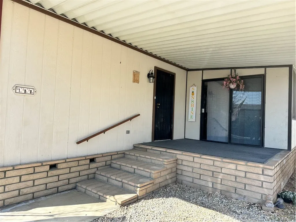 Motivated seller for this upgraded 2-bedroom, 2-bath gem in the beautiful, picturesque Soboba Springs 55+ gated park. Nestled at the end of a quiet cul-de-sac, this move-in ready home is bursting with upgrades: sleek quartz countertops, soft-close cabinetry, newer appliances, stylish French doors in dining room and main bedroom plus more! Bonus solar panels power a newer (2022) HVAC system-keeping you cool while saving hundreds every summer! Enjoy your morning coffee in the bright sunroom or watching the sunrise from the cozy front porch with stunning views of the San Jacinto mountains. Fully fenced yard to keep your pets safe and no immediate neighbor on one side for added peace and space. Don’t wait – schedule your tour today and get your offer into motivated seller!