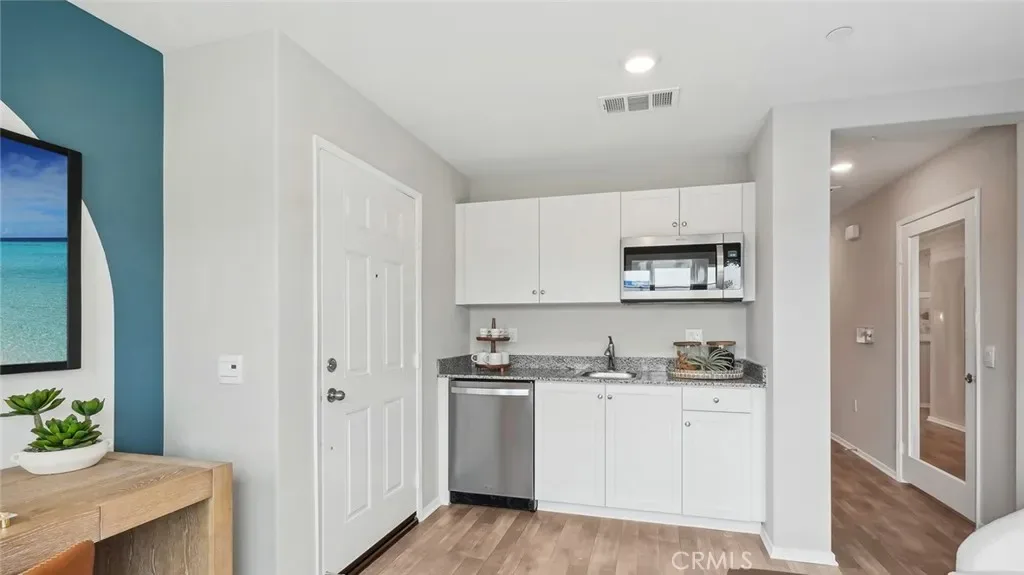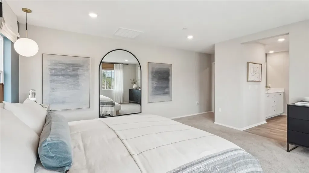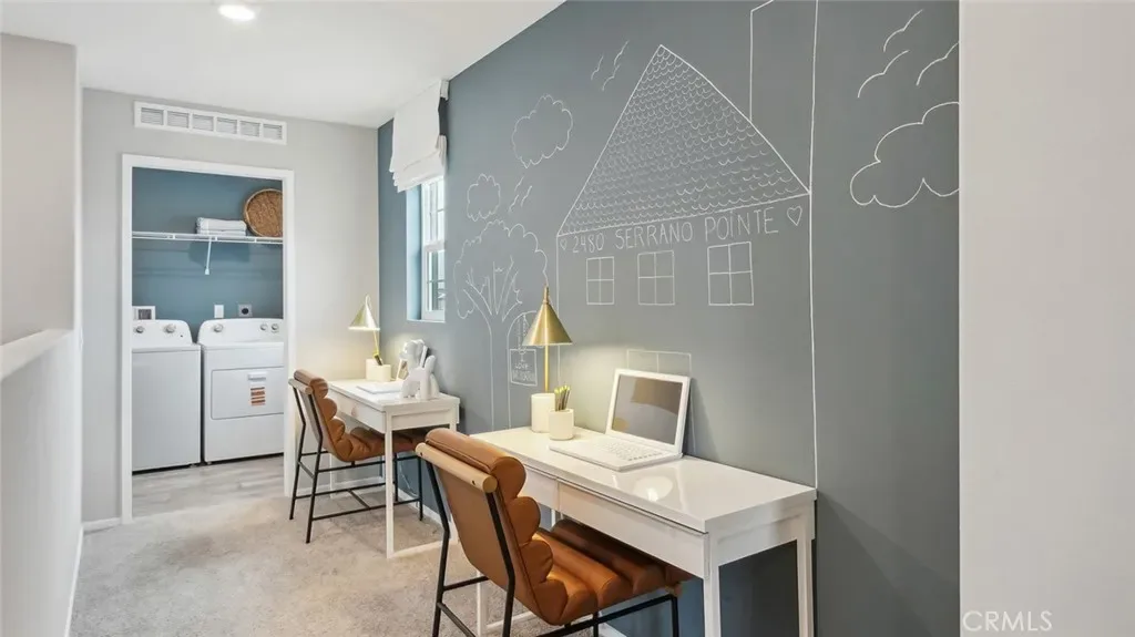 MODEL HOME – This Plan 2,480 square foot MultiGEN suite home on a corner lot has a California Traditional facade and a separate entry on the front side of the home to the suite with a lounging area, kitchenette with sink, microwave, and mini-refrigerator, stackable washer and dryer closet, bedroom and a full bathroom. The main home has a downstairs powder bathroom, open concept great room with dining area and a kitchen island with granite counters, stainless-steel appliances, walk-in pantry, and white shaker-style cabinetry throughout. Upstairs is a Tech area, laundry room with linen closet, the primary bedroom with ensuite and walk-in closet, two additional bedrooms, and full bathroom. The home comes with Smart Home technology, is all-electric, and includes an attached 2-car garage pre-plumbed for an electric car. The front yard is landscaped and irrigated. We anticipate this home will be ready for move in June 2026.