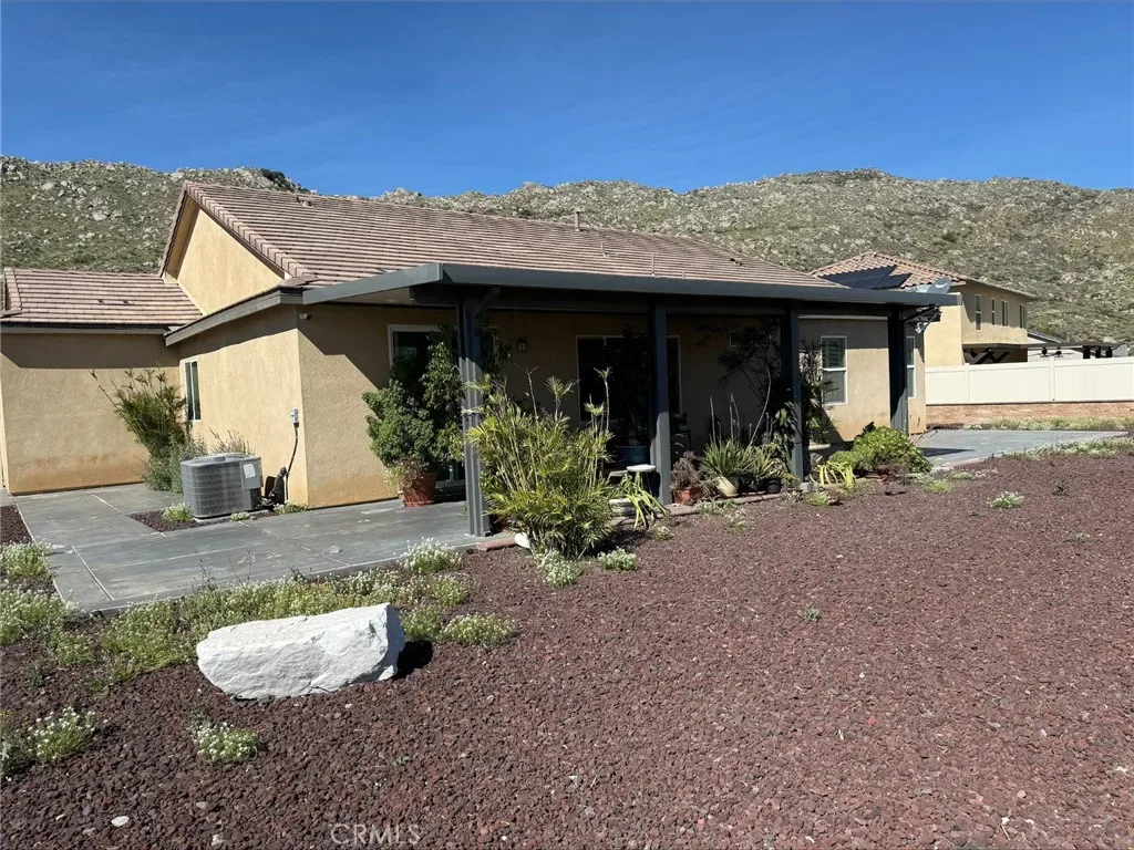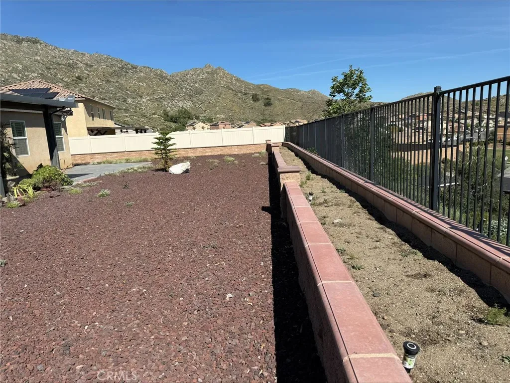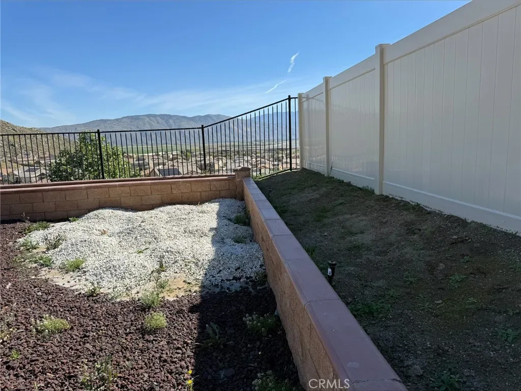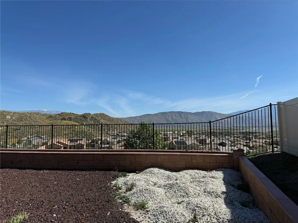 The back yard has been 100% upgraded and must be seen. Patio cover, stamped concrete patio and sidewalk. The custom garden or flower bed wraps all the way around the perimeter of the back yard. The views are just amazing