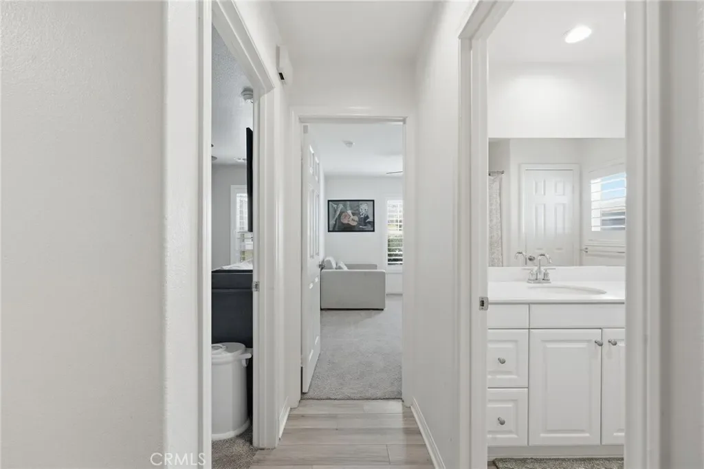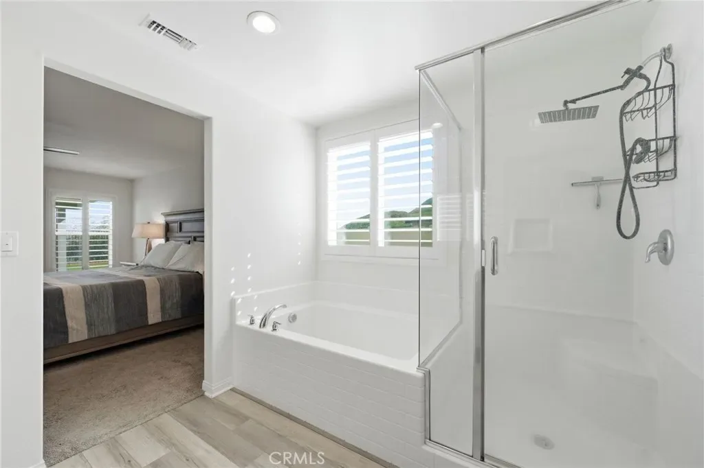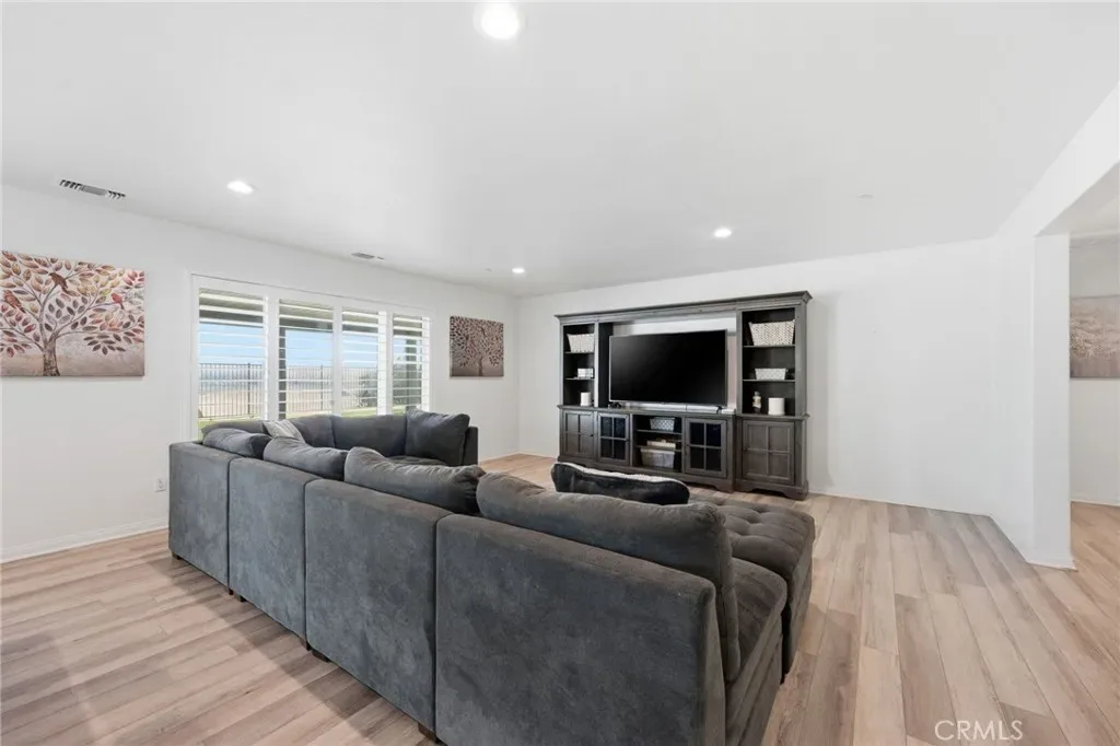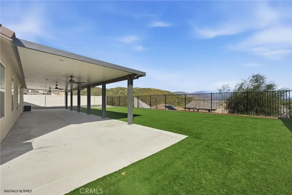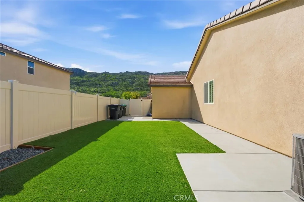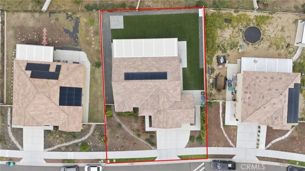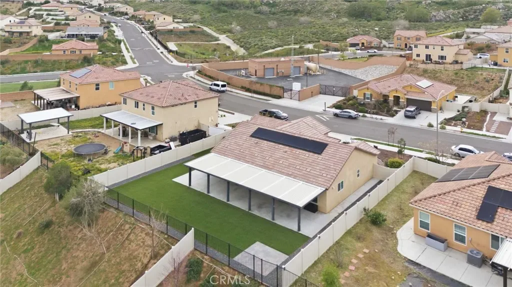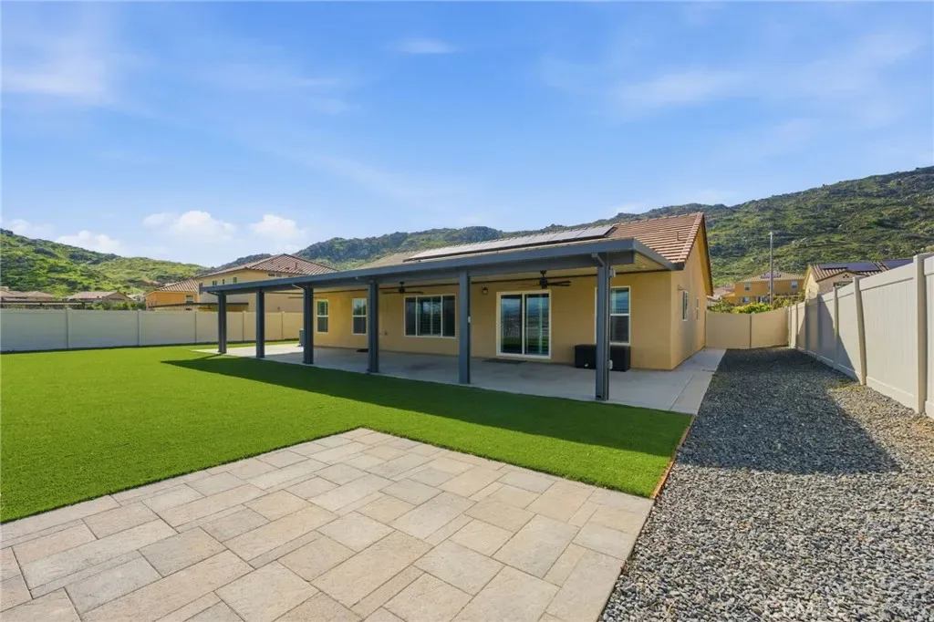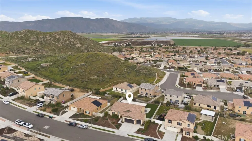 Come enjoy the panoramic mountain views from this single-story home in The Cove Community in San Jacinto! Built in 2021, this home features 1,698 square feet of living space, 3 bedrooms, 2 full bathrooms, open and bright living spaces, with a beautiful eat-in kitchen with extra seating at the kitchen island. The spacious primary bedroom is a true primary suite. Its ensuite bathroom features dual sinks, glass enclosed walk-in shower, bathtub, walk-in closet, and water closet. Your guests will love the secondary bedrooms and shared bathroom that are privately situated off the hall on the opposite end of the home. The large private backyard yard offers a full-length covered patio, pet-friendly artificial grass, and low maintenance hardscape. PAID OFF SOLAR (9 panels), luxury vinyl plank flooring, window shutters on ALL windows, indoor laundry room, and attached finished 3-car garage set this home apart from others within the community! Residents of The Cove have full access to the outdoor entertaining areas, playgrounds, courts, and fields with a low monthly HOA fee. Don’t miss this opportunity to own this move-in ready home tucked away in the peaceful hills.