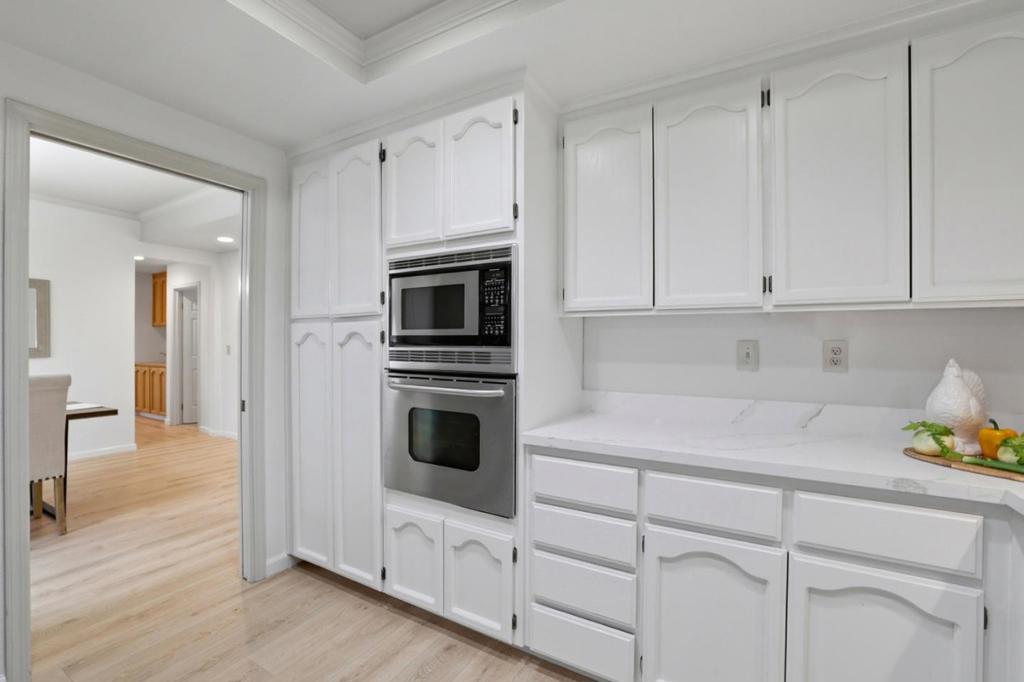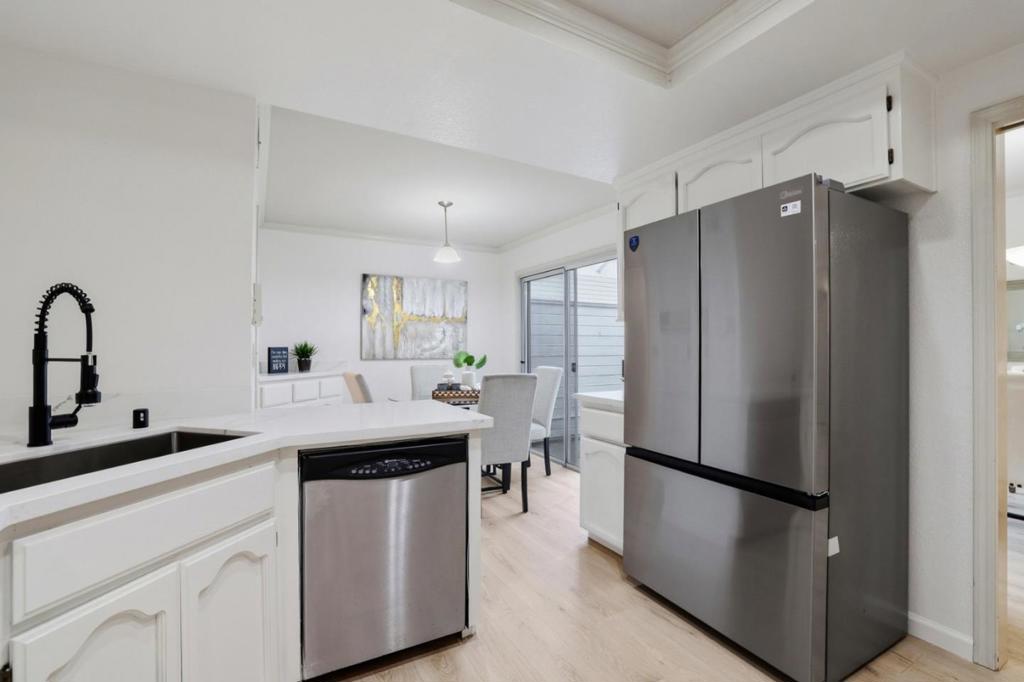Recent updates are showcased in this 3 bedroom, 2 bathroom home offering 1,827 sq ft of comfortable living space on a 5,985 sq ft lot. The kitchen features new quartz countertops, a new cooktop & refrigerator, updated backsplash, sink, faucet, & cabinet hardware. A tray ceiling adds subtle character, & the eat-in layout includes a slider to the atrium. The living room is filled with natural light & features a vaulted ceiling, recessed lighting, & a fireplace with mantel. The dining area includes a built-in cabinet topped with new quartz, along with a wine refrigerator, while a large slider opens to a private atrium. The spacious primary bedroom offers a peaceful retreat with a tray ceiling, walk-in closet, & a slider leading directly to the backyard. The primary bathroom features a new countertop & faucet, dual sinks, a walk-in shower, & a separate soaking tub. Two additional bedrooms are well sized, including one with three windows that bring in abundant natural light. The hall bathroom has been updated with a new toilet & faucet & includes a shower over tub. Freshly painted interiors, new laminate flooring, & new baseboards run throughout the home. Enjoy access to the community pool. Assigned to highly rated Williams Elementary, Bret Harte Middle School, & Leland High School.