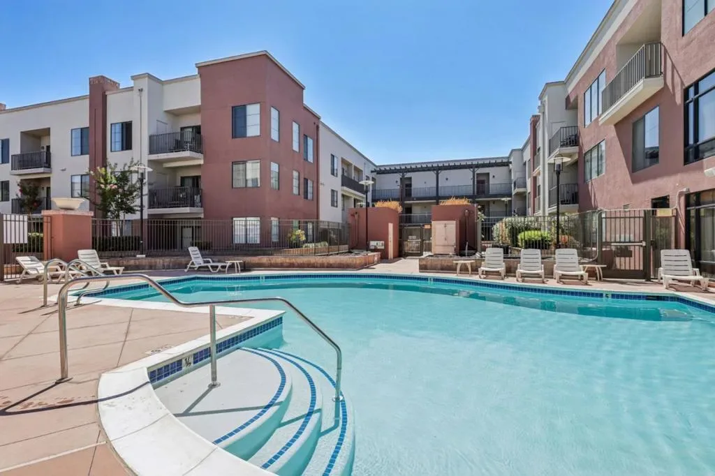 Welcome to this stylish 2 bedroom, 2 bath condo offering 1,000 sq. ft. of modern living in the heart of San Jose. Situated on the ground floor, this home features an open living room and kitchen concept with sleek grey and white tones throughout. The updated kitchen boasts refinished white cabinets, stainless steel appliances, white quartz countertops, and a chic tile backsplash, perfect for both everyday living and entertaining. The bathrooms offer spa like comfort with granite counters, white vanities, grey tile accents, and a soaking tub for relaxation. A private back patio extends the living space outdoors, ideal for morning coffee or unwinding in the evening. Enjoy the convenience of underground parking and a secure, locked building with an indoor mail room for packages. The community provides resort-style amenities including a fitness center, pool, conference/meeting rooms, and more all designed to enhance your lifestyle. Just minutes from downtown, shopping, and dining. This home falls within the San Jose Unified School District. Comfort & convenience. Some listing photos have been digitally altered/virtually staged. Original, unaltered photos are available