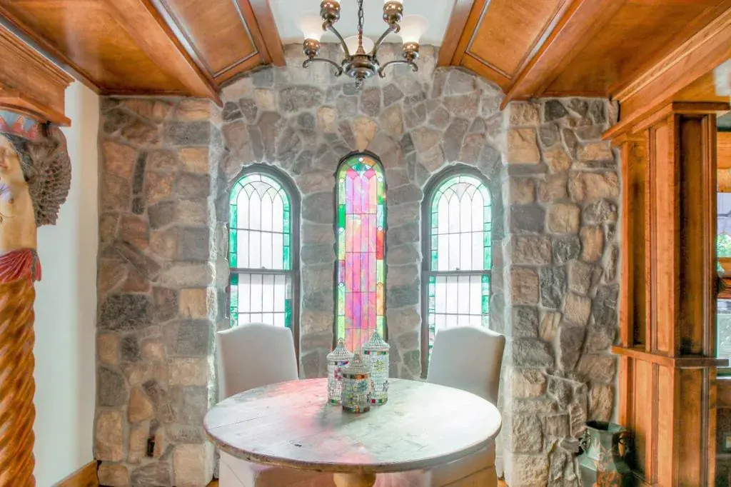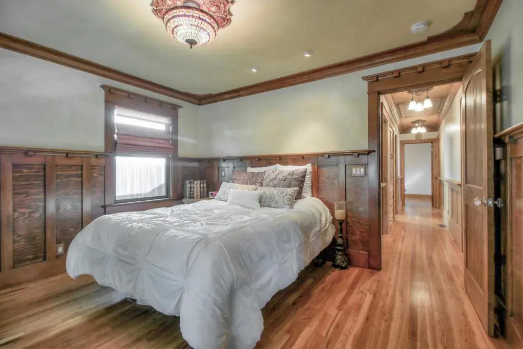 Three bedrooms and two bathrooms.One of a kind and at a great value. Situated on a tree lined street with an abundance of custom work in every room.Hand carved wood features,accent lighting throughout,distressed leather panels-living area.Home offers;alder doors, thick molding,wainscotting,stone work-kitchen,dining,sunroom.Separate sunroom for additional living area w/natural light.Newer windows,dining room radiates light through its stained glass windows,granite kitchen counters,Viking stove, Subzero,Bosch dishwasher,natural stone sink,designer knobs,custom cabinets w/designer under/over,in cabinet lighting.Custom brick work; in/exterior fireplace,front/back walkways.Remodeled baths w/beautiful Italian tile.Sunken tub w/jets,a large shower w/astonishing arches,stained glass window,shower faucet w/body sprays.All updated electrical main/sub panels,AC (new),central heat,refinished hardwood floors,copper plumbing/gutters,detached garage,large backyard.Walking distance to town and schools.Close to freeways/businesses.