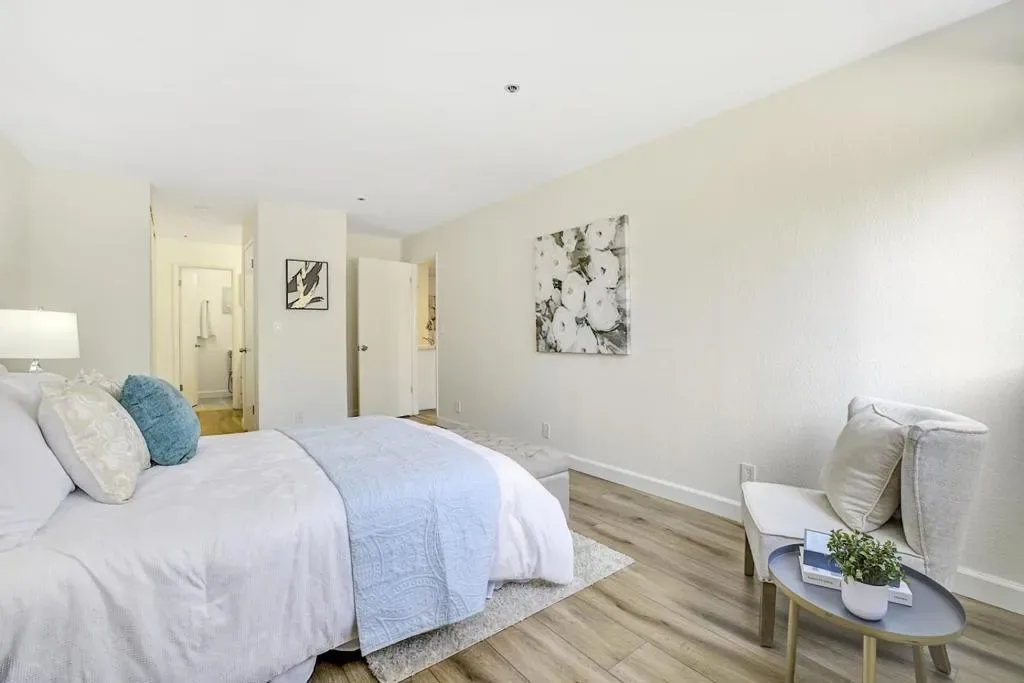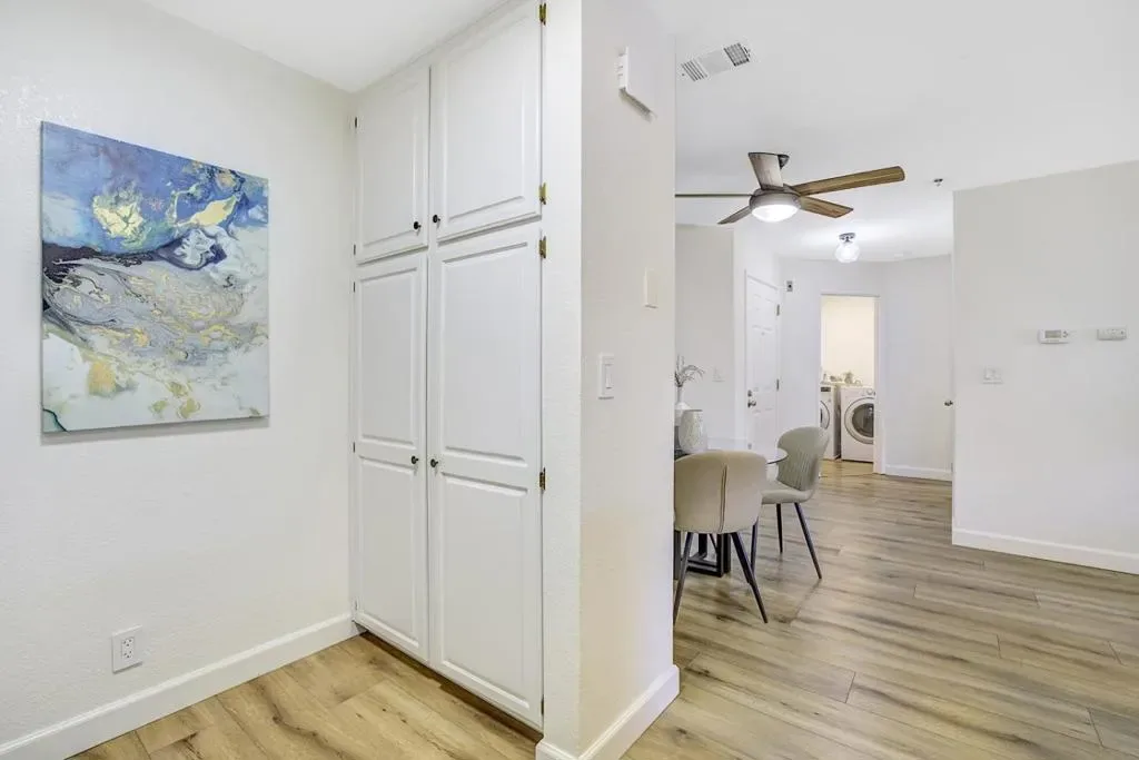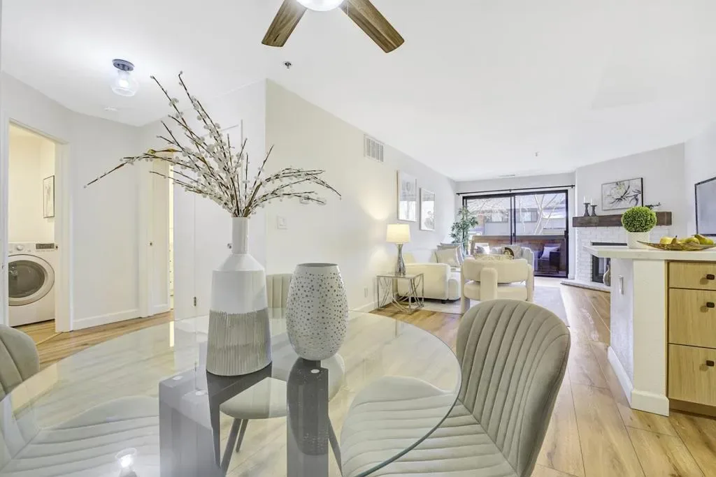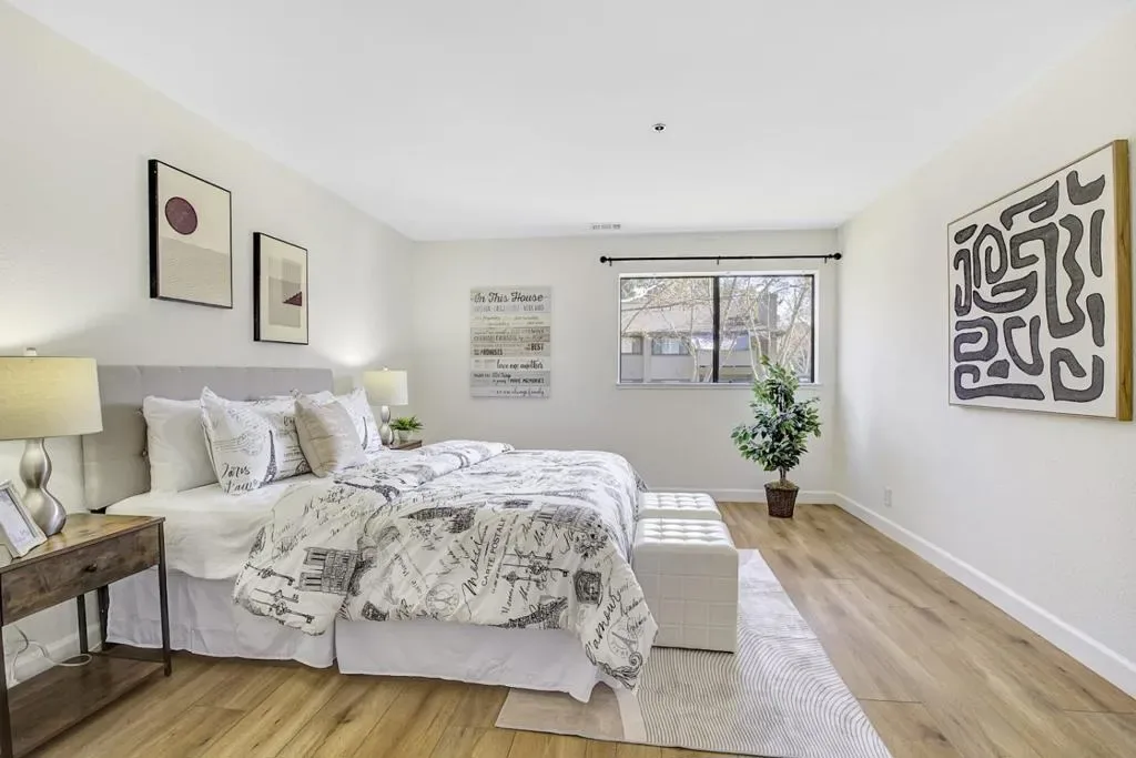 Gorgeous Lakeview Terrace condo nestled among peaceful outdoor spaces. Open floorplan with two spacious primary bedrooms, each with fully remodeled baths, one with a deep soaking tub, the other a custom-built shower. Updated kitchen features soft close cabinets, stainless steel appliances, and quartz countertops. Plank floors, white brick fireplace, and bright east-facing windows create a warm, inviting atmosphere. In-unit washer/dryer, upgraded electrical panel, and assigned garage parking complete the home. Step outside to a serene patio with storage, community pool & hot tub, scenic paths, and direct access to Almaden Lake Park with playgrounds, bocce courts, and trails. Conveniently located near Oakridge Mall, Whole Foods, Trader Joes, Costco, TJ Maxx, many restaurants, and more, with easy access to HWY 85 and 87 for an effortless commute. Comfort, nature, and convenience all in one home. Inquiry directly for special buyer incentive!
