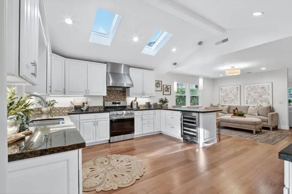 Beautifully rebuilt in 2008, this high-quality home offers large common areas made for entertaining, including a generous living room & great room including an expansive chef’s kitchen, family room & dining…this kitchen is a huge standout!! Designed for the serious chef: new gas range & refrigerator, abundant cabinetry, lots of work space, casual bar dining, wine fridge, skylights. Spacious living room with cozy fireplace. Bright & private primary suite is divine, overlooking the backyard with slider that brings the outside in, also a generous walk-in closet. Brand new owned solar- estimate 9-10 months a year free electricity!, dual-pane windows, refinished hardwood floor, new paint in and out, new landscape, convenient inside laundry room. Two good-sized bedrooms & full bath. You will love this floor plan! The outdoor space is delightful – grown your own veggies, privately lounge in the spa, dine al fresco – ready for your backyard fun! With its thoughtful updates, large-scale living spaces & move-in ready appeal, this home presents an exceptional opportunity in a desirable location. Low-traffic street. Centrally located – so close to Santana Row, Downtown Campbell, Pruneyard. Garage can be a great bonus room! Close to BASIS Independent, St. Martin of Tours. This is a true gem