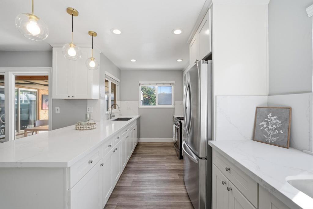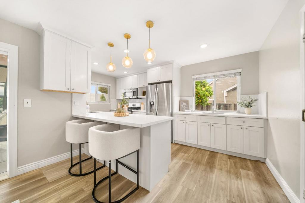 ADU possibilities on a 9,100 lot. Welcome to this charming 3-bedroom, 2-bathroom home located in the vibrant city of San Jose. Situated on a generous 9,108 square foot lot, this residence offers a spacious and comfortable living environment. The kitchen is a culinary delight, featuring granite countertops, a dishwasher, and a gas oven range, perfect for preparing delicious meals. Kitchen bar has been extended and an extra sink with cabinets as been added. The home boasts laminate and tile flooring throughout, providing both style and easy maintenance. The home also includes modern amenities such as central AC and forced air heating, ensuring year-round comfort. Convenience is key with an attached two-car garage and in-house laundry facilities, making everyday living a breeze