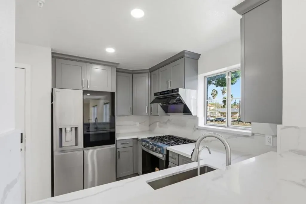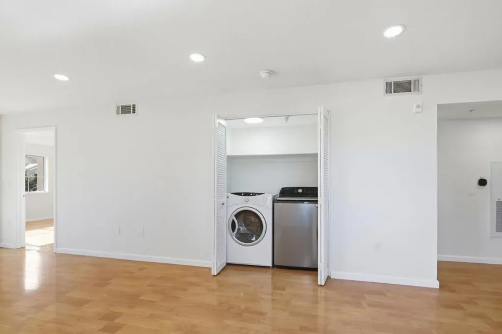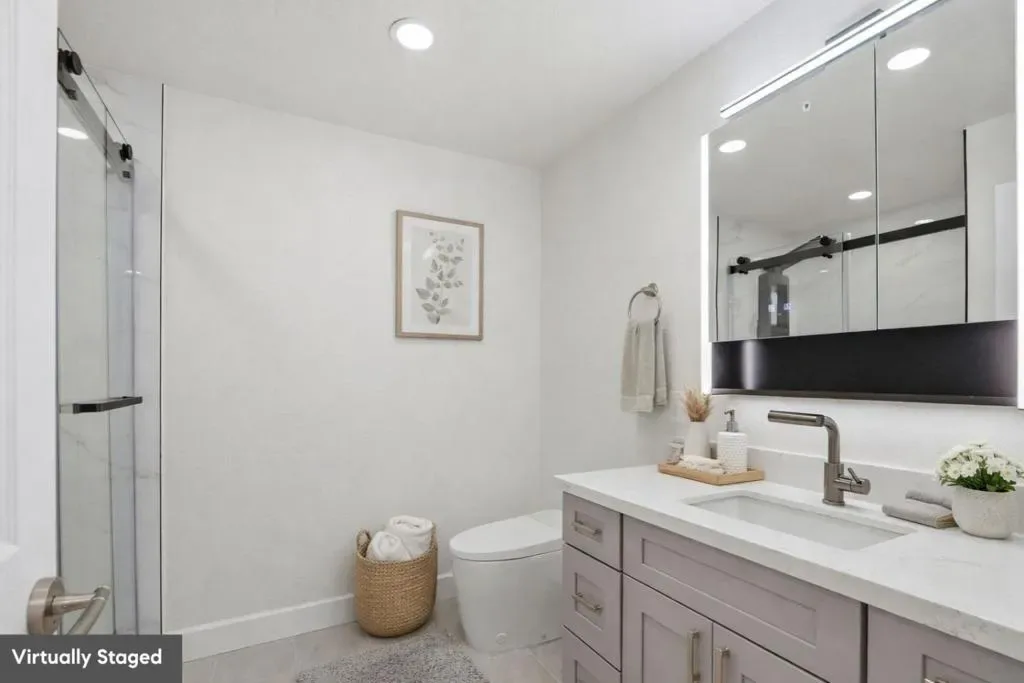 1st-floor, corner unit in an excellent location, close to shopping and restaurants. Just remodeled with refinished floors and fresh interior paint. Fully renovated kitchen and bathroom featuring high-end finishes and a cohesive suite of premium appliances designed for a seamless, modern look. Highly technology-driven home with fully integrated smart systems, allowing remote control of lighting, faucets, and shower water temperature directly from your phone. The kitchen includes upgraded appliances and a specialty cocktail ice maker. Spa-inspired bathroom with a smart shower system offering multiple settings, including waterfall, rain, and spray functions, plus a sleek smart toilet. Enjoy a cute, cozy patio ideal for outdoor entertaining, along with the convenience of an in-unit washer and dryer. Turnkey condition offering a rare blend of location, convenience, and cutting-edge upgrades, with easy access to Highways 680, 880, and 101, San Jose airport. VIRTUALLY STAGED