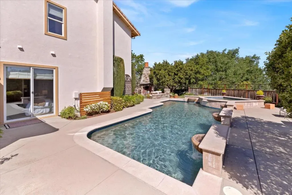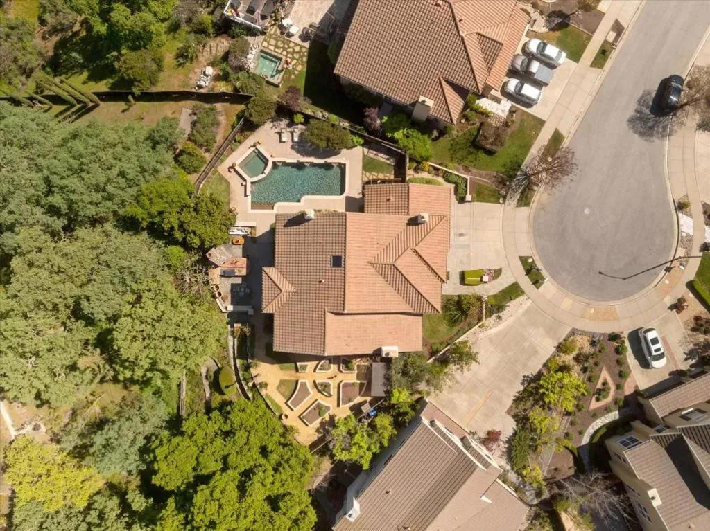 Serene Almaden Valley estate setting with mature oak trees and scenic hillside views. Located on a quiet cul-de-sac, this Country View Estate sits on a rare 13,112 sq ft view lot with generous grounds providing exceptional privacy while remaining close to shopping, dining and everyday conveniences. Airy interiors feature soaring ceilings and dramatic windows that fill the living spaces with natural light throughout. Gourmet kitchen offers a sub-zero refrigerator, granite countertops, gas cooktop, built-in double ovens, island, pantry and travertine floors, opening seamlessly to the family room for effortless living and entertaining. The outdoor retreat features an impressive stone outdoor kitchen, custom Rumford fireplace, pool and spa, raised garden beds, chicken coop and winding stone pathways positioned to enjoy the surrounding views. The flexible floor plan includes a lavish primary suite retreat boasting an oversized tub, double vanities and a spacious walk-in closet along with a private downstairs ensuite bedroom ideal for multigenerational living, guests or a home office. The upstairs bonus room, with a fireplace, can serve as a fifth bedroom or media room. Top Almaden schools: Williams, Bret Harte and Leland.
