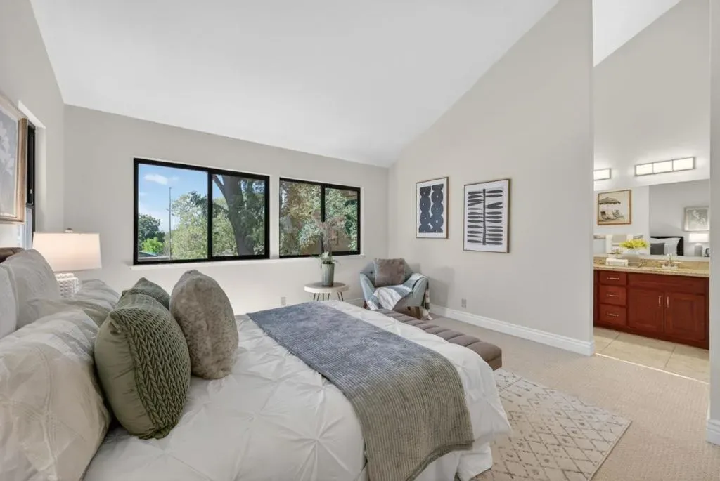 This 2-bed/2.5-bath end-unit townhome in North San Joses Berryessa neighborhood has a lot going for it: vaulted ceilings throughout, natural light on three sides, and a large private patio well-suited for relaxing and entertaining. Inside, the open floorplan flows from a living room into an updated kitchen with shaker-style cabinetry and granite countertops. The primary suite is spacious, with vaulted ceilings, dual vanities, granite counters, and a glass-enclosed walk-in shower. A generous guest bedroom, updated hall bath, and in-unit upstairs laundry round out the second floor. The 2-car attached garage, guest parking, and community amenities including a pool, clubhouse, and green space add to everyday comfort. Excellent educational opportunities, the K-12 pipeline stands out: Ruskin Elementary, Sierramont Middle, and Piedmont Hills High (10/10GreatSchools rating), with the Berryessa Branch Library and the Saturday Farmers Market on Piedmont Road both close by. This townhome is well-situated near Cisco, Broadcom, and the Milpitas tech corridor, with direct BART access for broader Bay Area commutes. Also within easy reach: I-680, Capitol Expressway, light rail, Costco, H Mart, Target, The Great Mall, Penitencia Creek Park, Alum Rock Park, and Sierra Vista Open Space Preserve.