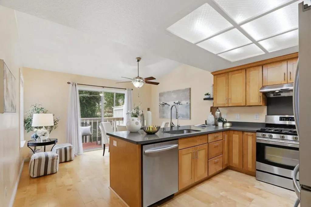 Absolutely stunning Almaden townhome, surrounded by nature in the highly sought-after California Ridge community. This home is light and bright with vaulted ceilings, hardwood flooring and a cozy fireplace in the living room. Updated kitchen has stainless steel appliances including a gas stove. A large balcony is off the living room area and a patio/backyard is downstairs, perfect for relaxing and enjoying the wildlife and greenbelt. Primary bath has double sinks, 4th bedroom/office is downstairs. Radiant hot water heated flooring throughout the entire lower level, including the bathroom, and a Navien Tankless water heater. A new roof was done and main sewer line replacement was done about a month ago. Close to all the amenities the valley has to offer and excellent schools: Williams Elementary, Bret Harte Middle and Leland High.