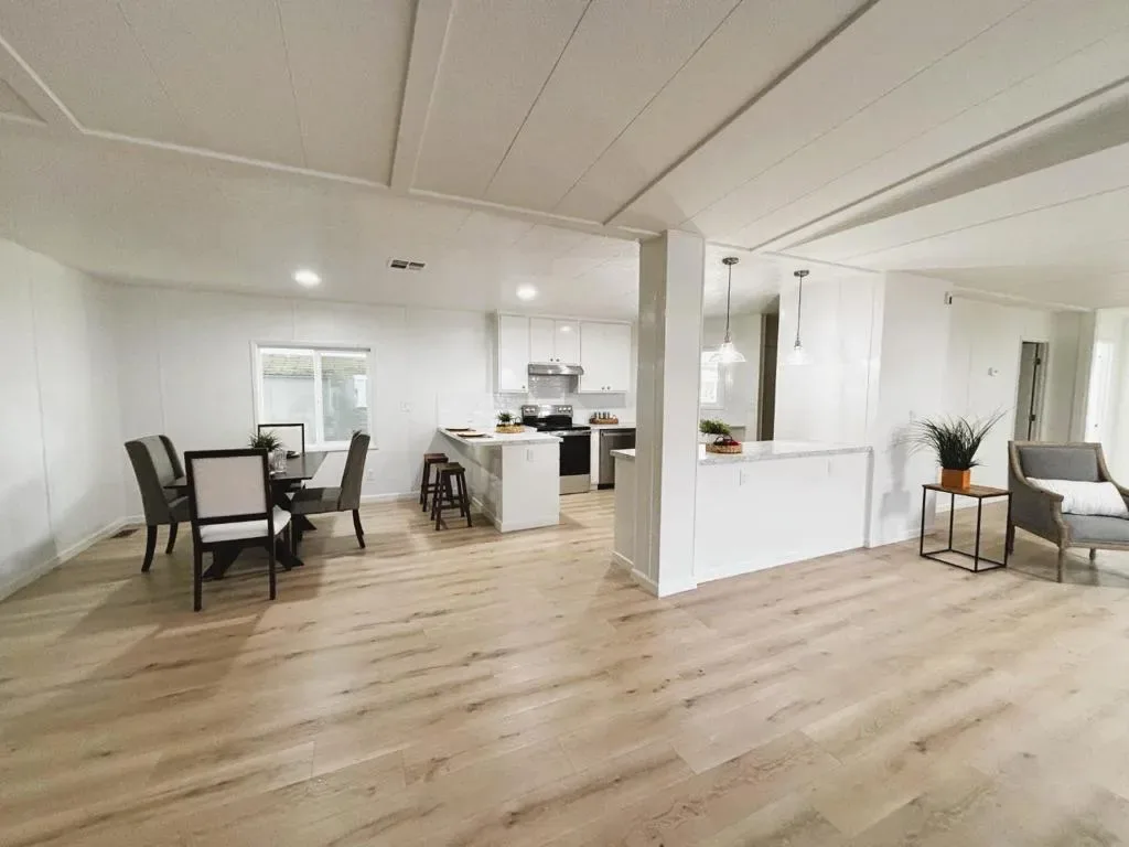 Step into this beautifully remodeled 1,996 sq. ft. triple-wide home, completely transformed to look and feel brand new. Featuring a bright, open floor plan, this 3-bedroom, 2-bathroom residence is the perfect blend of high-end style and everyday function. The heart of the home is a stunning kitchen boasting all-new cabinetry, sleek stainless appliances, and a convenient breakfast bar that flows seamlessly into the dining and living areas ideal for family gatherings and entertainment. Retreat to the extra-large primary suite, or enjoy the comfort of three spacious bedrooms. Every detail has been addressed for a truly turnkey experience: new flooring, furnace, water heater, windows, lighting, plumbing and so much more. Freshly painted inside and out with brand-new landscaping and a separate storage shed. Located in the highly desirable Chateau La Salle all-ages park, you’re just minutes from great dining, shopping, and public transit. This is move-in ready living at its finest! Space rent $1670.