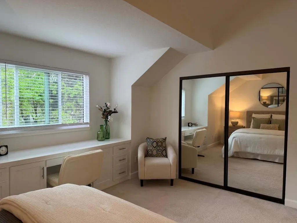 Welcome to Hamilton Place Cottages! This beautiful home is located near the end of a cul-de-sac which backs up to the Los Gatos Creek Trail. The home offers a quiet spot away from the busy traffic on Hamilton and Leigh Avenues, yet it’s close to everything The Pruneyard, Downtown Campbell and Willow Glen have to offer. Come tour this bright, airy 2-bedroom, 2.5-bath townhouse with vaulted bedroom ceilings, an updated interior, fireplace and private cozy back-yard with enchanting private patio. The home includes a full KitchenAid appliance suite and an attached 2-car garage with additional included storage and full-size washer and dryer plus folding counter with storage.